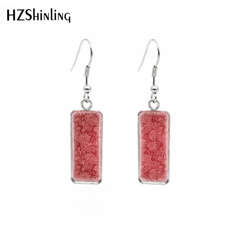 Серьги-Крючки с красной розой, прямоугольные, с цветами, для рукоде...
