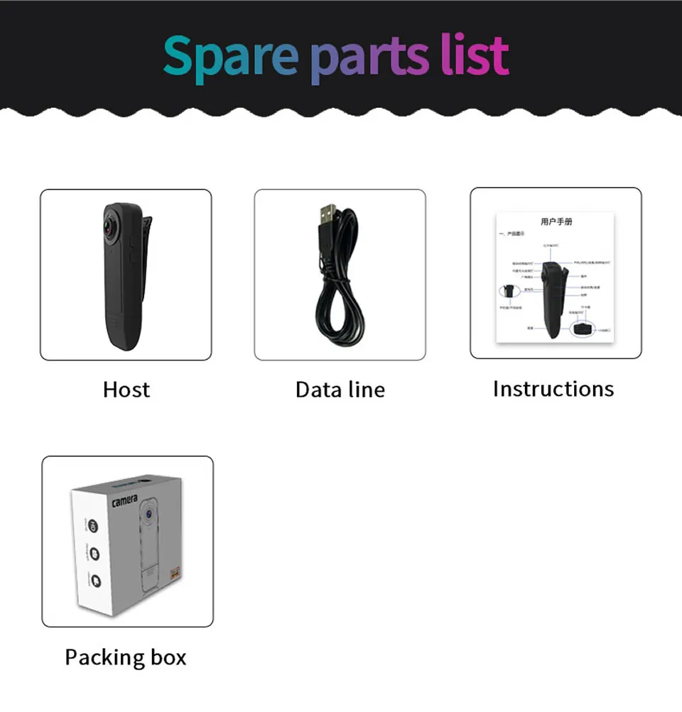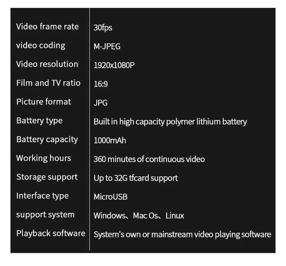 Камера среднего качества, вы не можете заказать больше для своей цены, записи должны быть сделаны в короткие сроки, в противном случае нет возможности скачать видео, максимум от трех до четырех минут, приемлемое аудио, приемлемые фотографии. Инструкции на китайском и английском языках.
