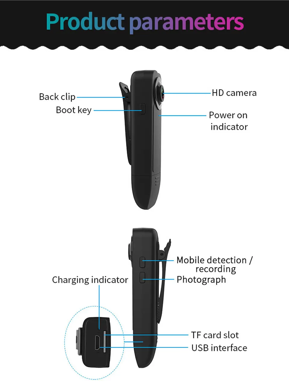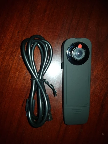 Камера как на фото. Практичный формат (слишком большой для шпионской камеры, но кнопки управления просты в использовании и даже читаются. Включает в себя инструкции, но довольно интуитивно понятный. Качество изображения приемлемо. Искажение изображения «рыбий глаз», как и ожидалось, под таким широким углом. Записанный звук немного приглушен, но громкость в порядке. Оригинальная коробка, зарядный кабель; Все прибыло в хорошем порядке. Выступающая линза подвержена появлению следов пальцев и царапинам, но до сих пор очень хорошая.