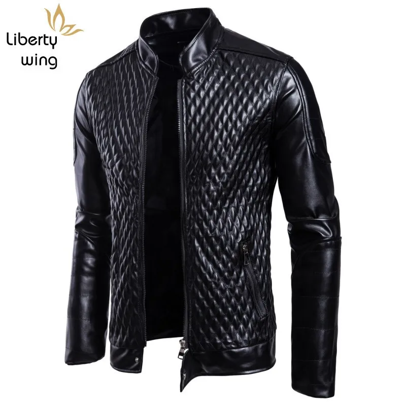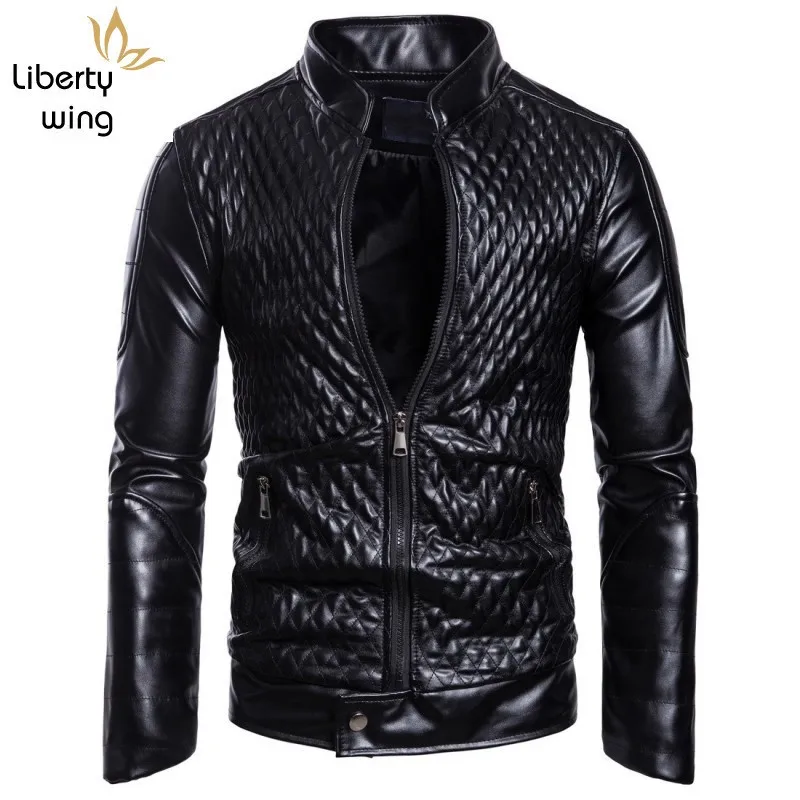 Мужская кожаная одежда, осень-зима 2021, куртка со стоячим воротник...
