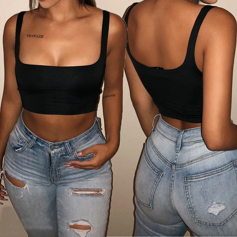 Сексуальный женский однотонный топ на бретелях 2019, укороченный то...