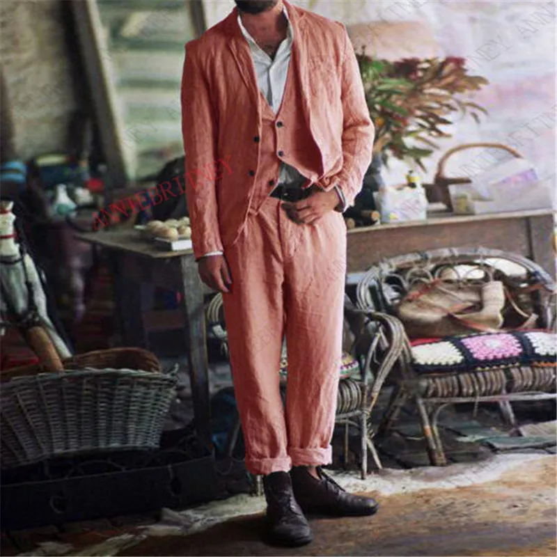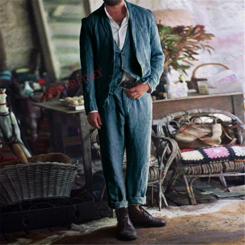 Классический летний мужской костюм 2020, 3 предмета, серые льняные пляжные мужские костюмы для свадьбы, повседневный мужской блейзер, смокинг для жениха, куртка, жилет, брюки