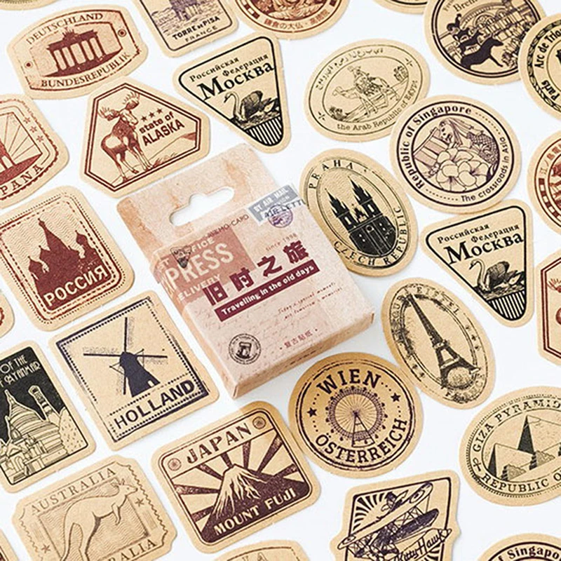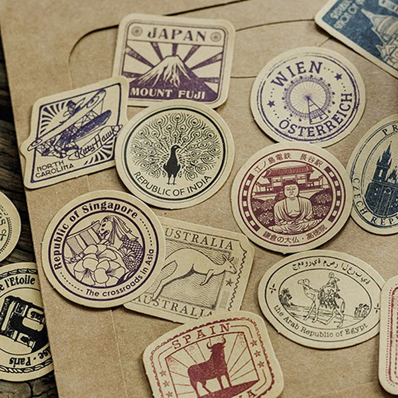 46 шт Путешествия под старину Стикеры s комплект Винтаж стран штамп...