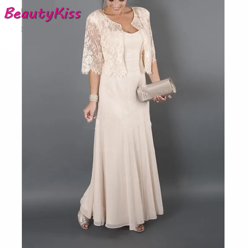 Элегантные женские платья для матери невесты с курткой, атласные платья цвета шампань из 2 частей, свадебные платья для матери невесты