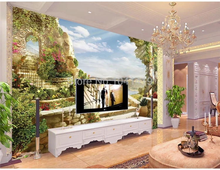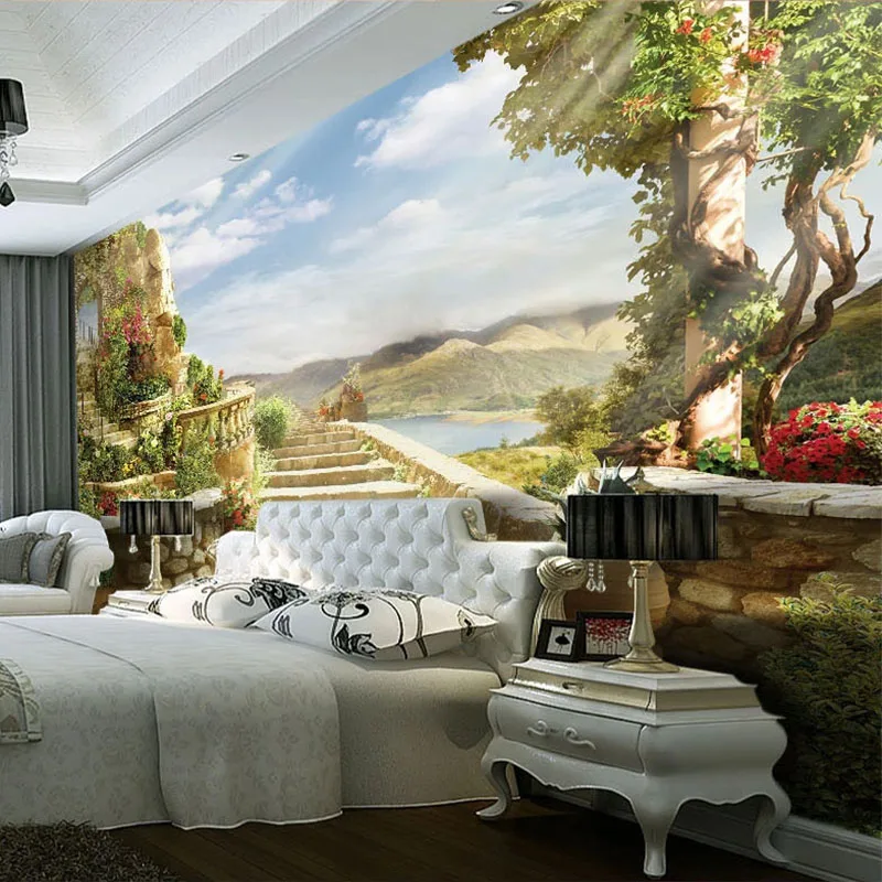 Настенные 3D-обои в европейском стиле с садовым ландшафтом, настенная живопись с природой для гостиной, телевизора, спальни, фоновые настенные бумаги 3D