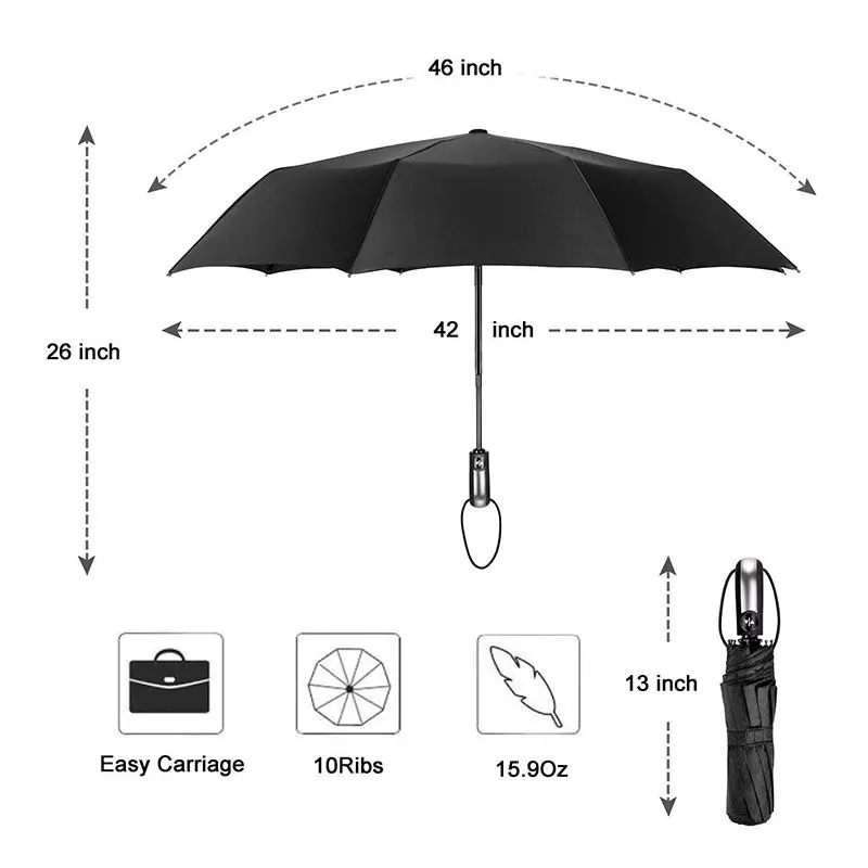 Зонт Автоматический с защитой от ветра и дождя для женщин и мужчин, зонтик складной роскошный большой с защитой от ветра и черным покрытием, 10 к