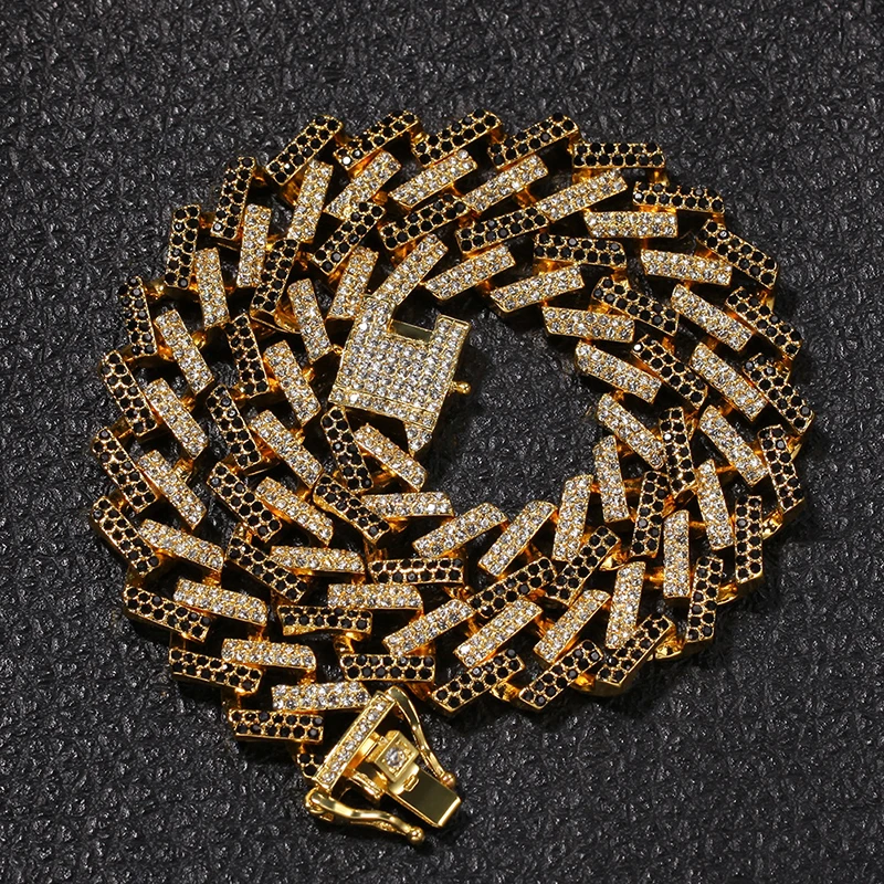 Цепочка с кубинскими звеньями Майами, 15 мм, со стразами, застежка ...