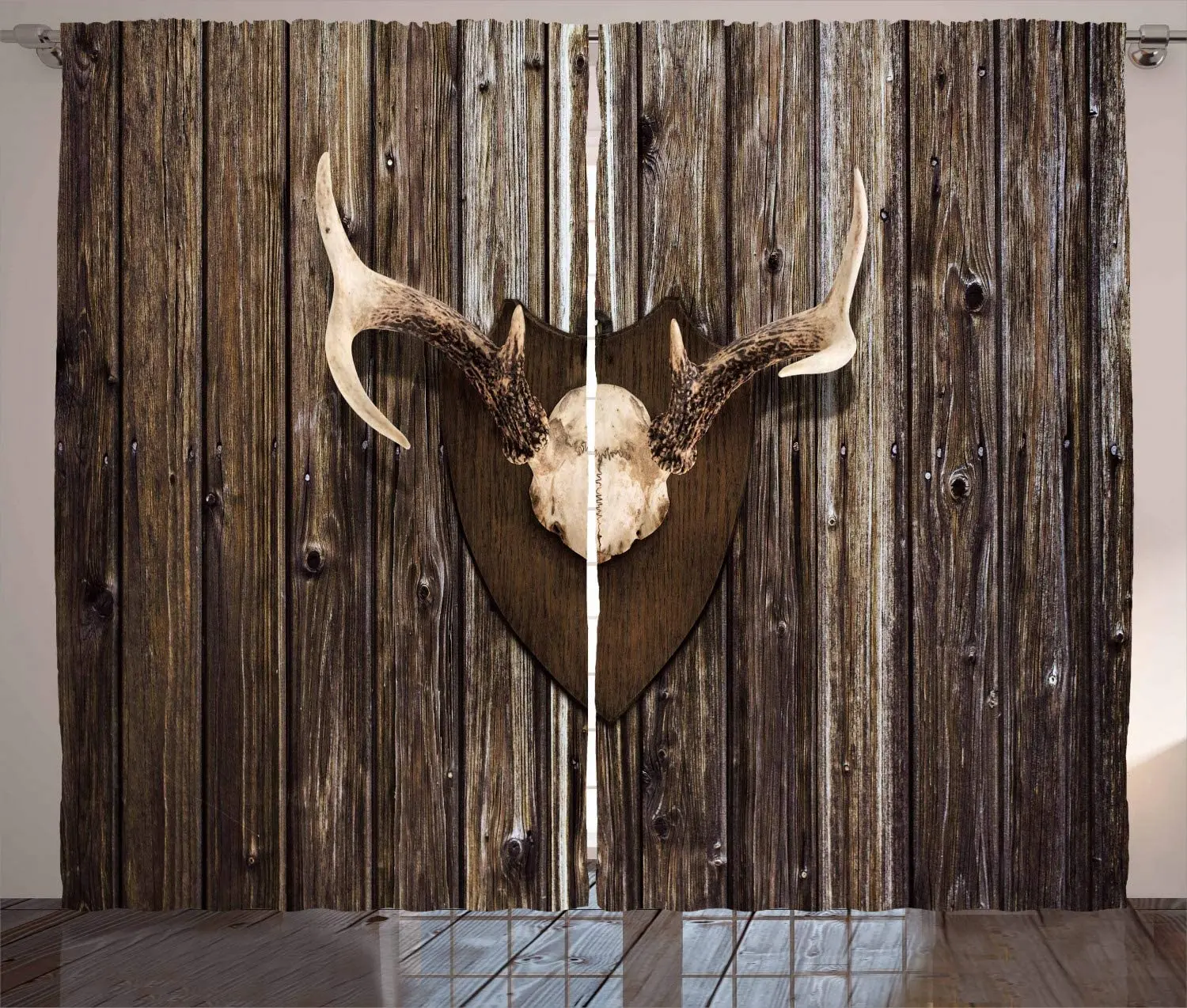 Занавески на окна с изображением волка коричневого цвета, шторы для...