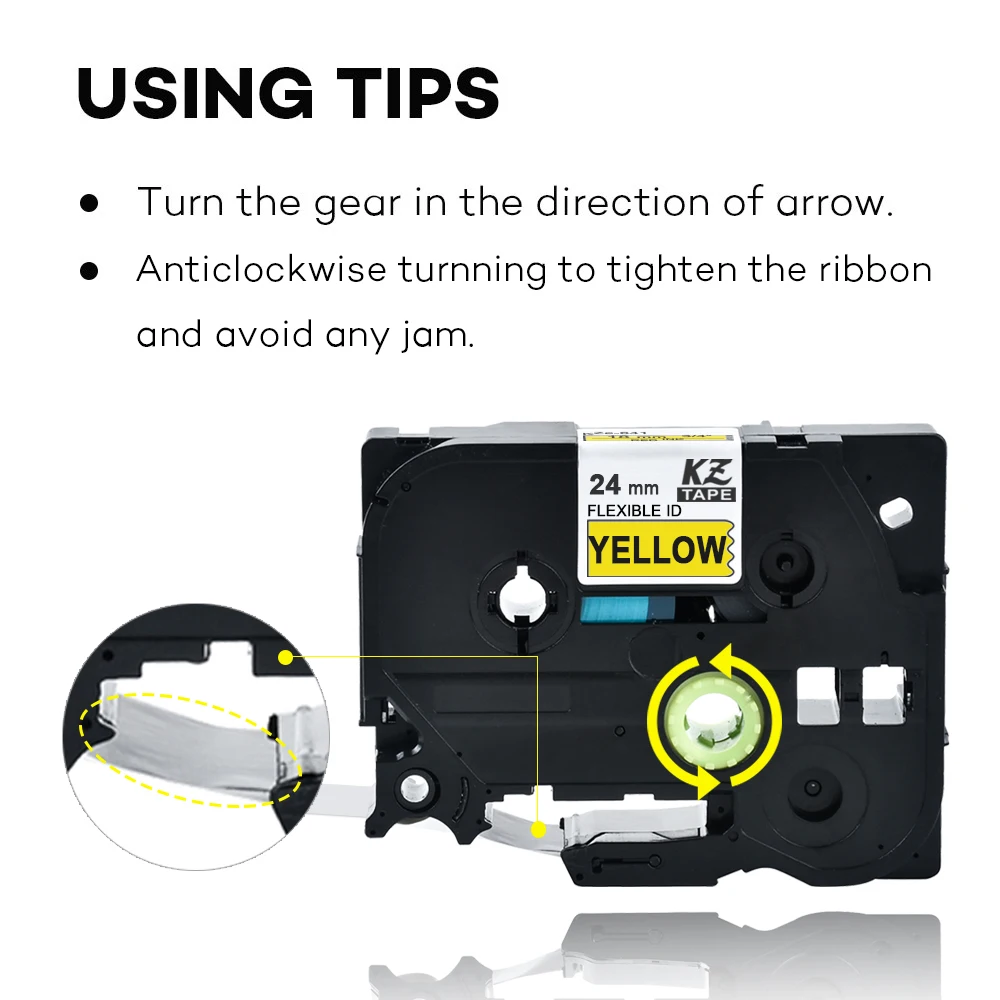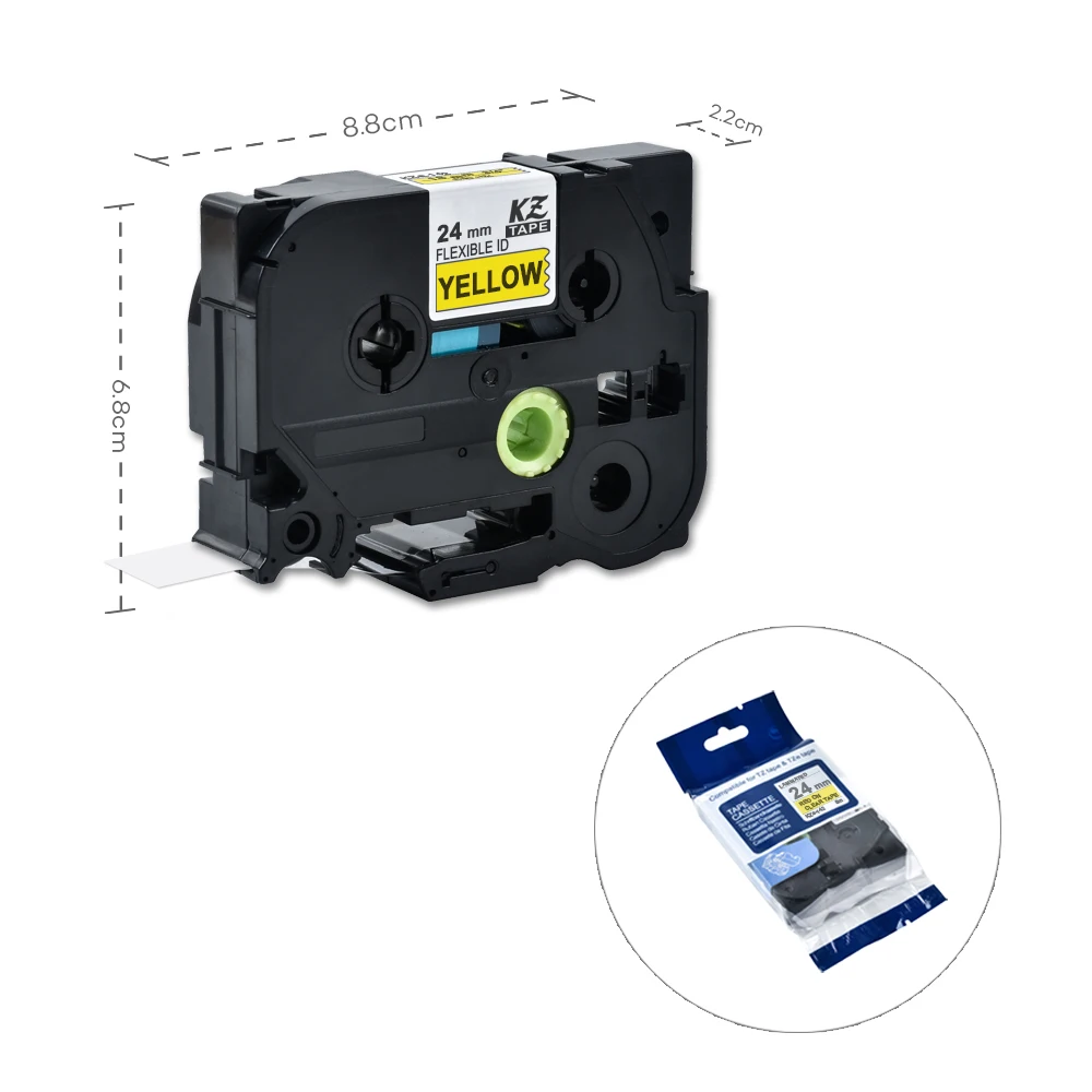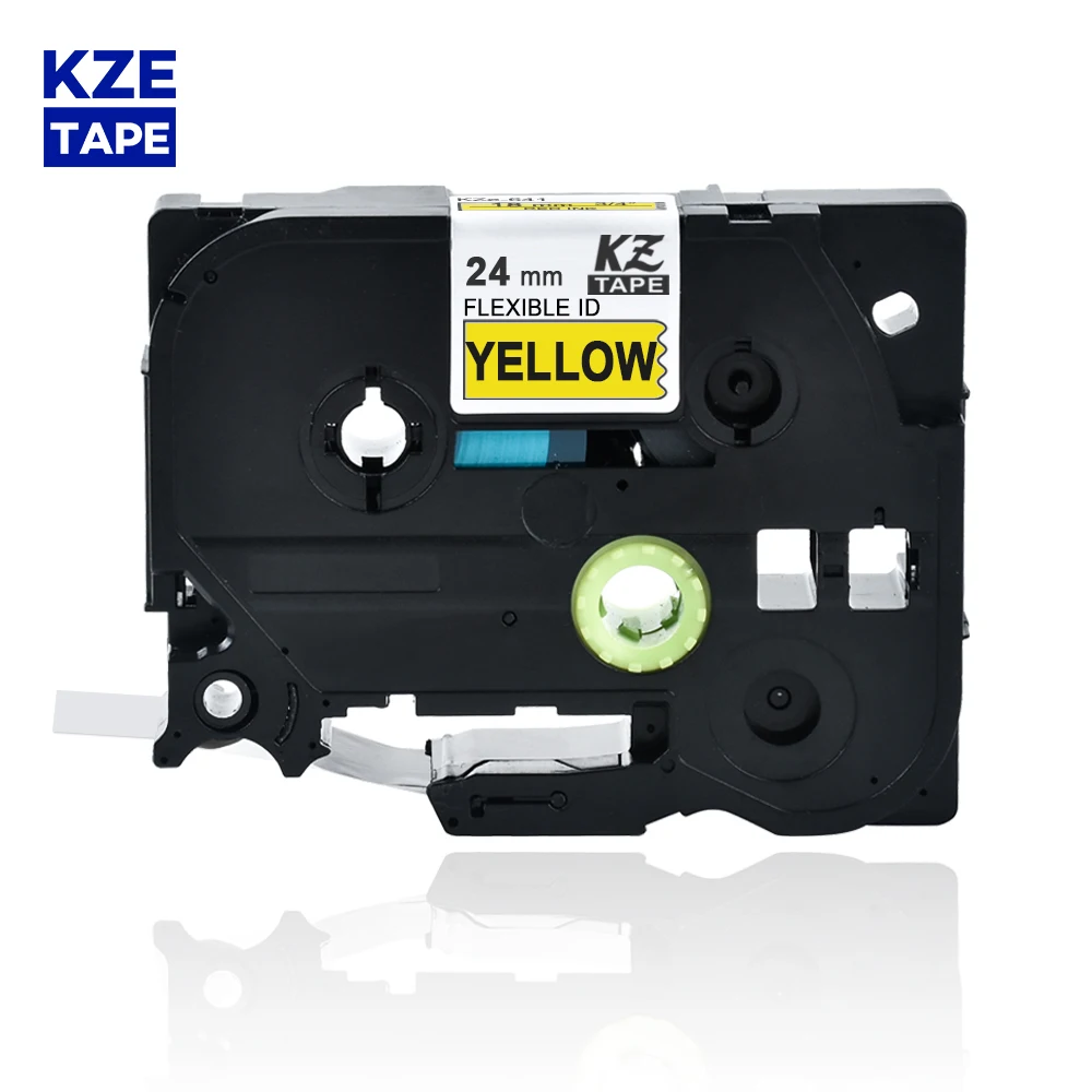 Гибкая этикетка 24 мм, черная на желтом родственнике, гибкая кабельная этикетка, ленты TzeFX651 Tze FX651 для P-touch PT