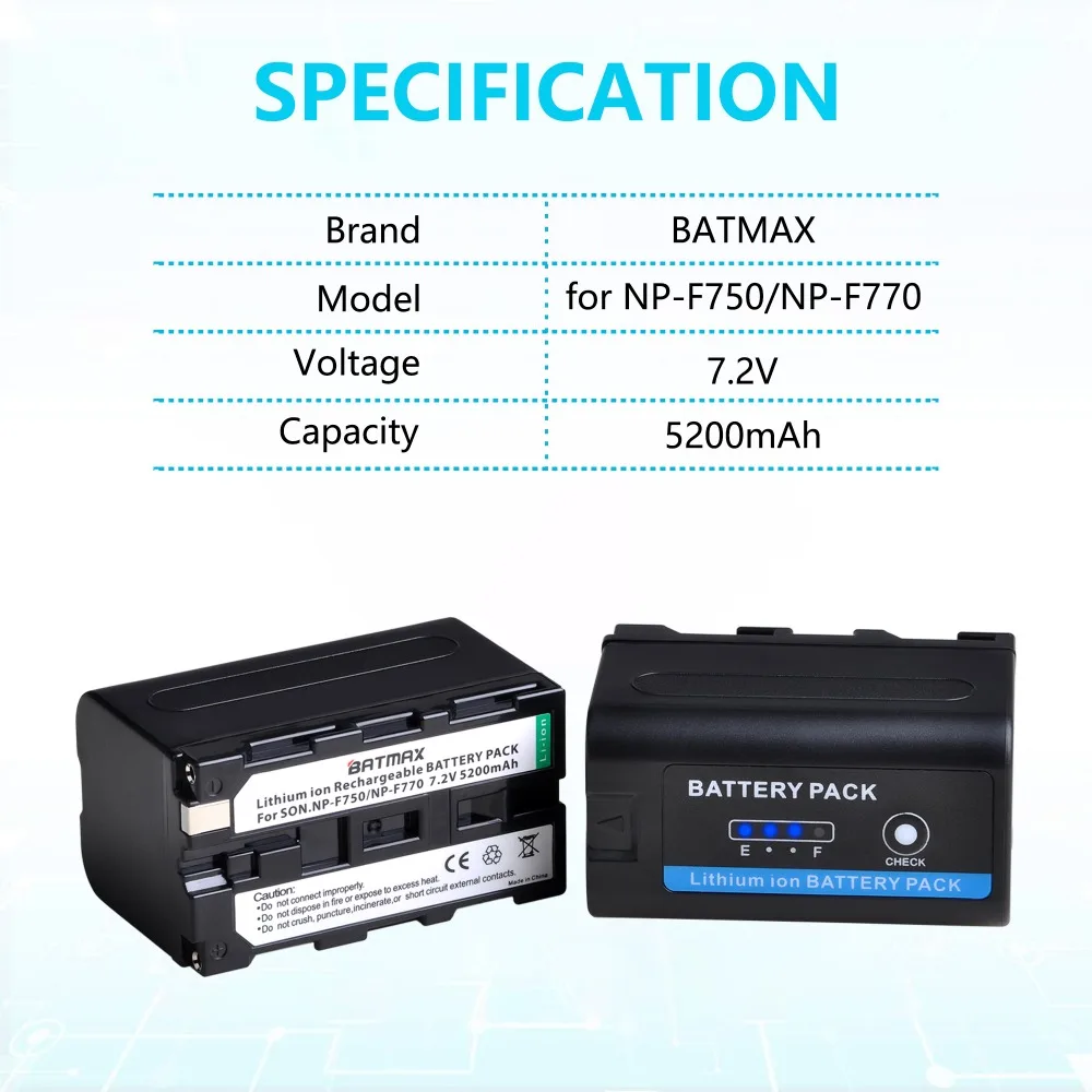 Аккумулятор Batmax 5200 мАч NP-F750 NP-F770 NP F750 NP F770 со светодиодными индикаторами питания + новое двойное зарядное устройство USB со светодиодами для Sony NP F970 F960 ccd-tr917 ccd-tr940 ccd-trv101 ccd-trv215