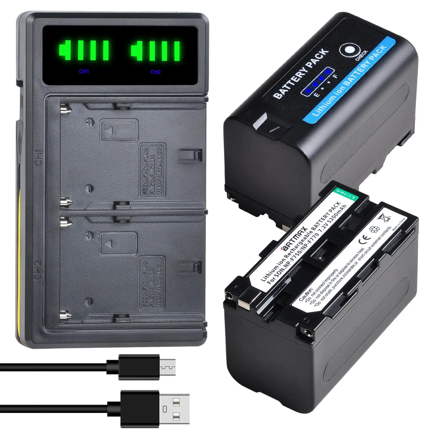 Аккумулятор Batmax NP-F750 NP-F770 со светодиодным индикатором заряда + зарядное устройство с двумя USB-разъемами для Sony NP F970 F960 F550 F570 QM91D CCD-RV100