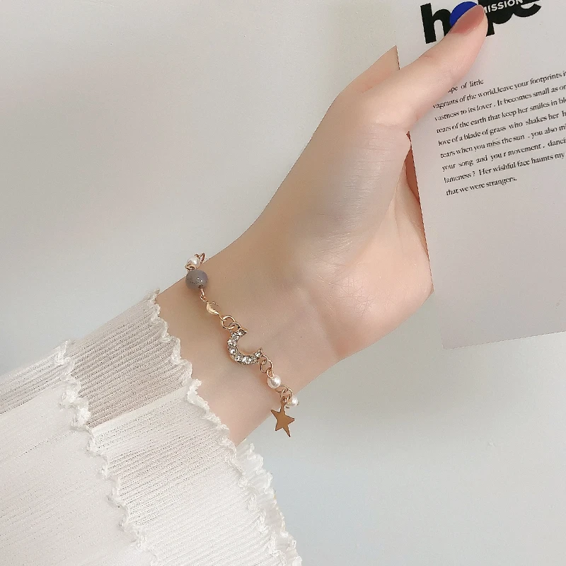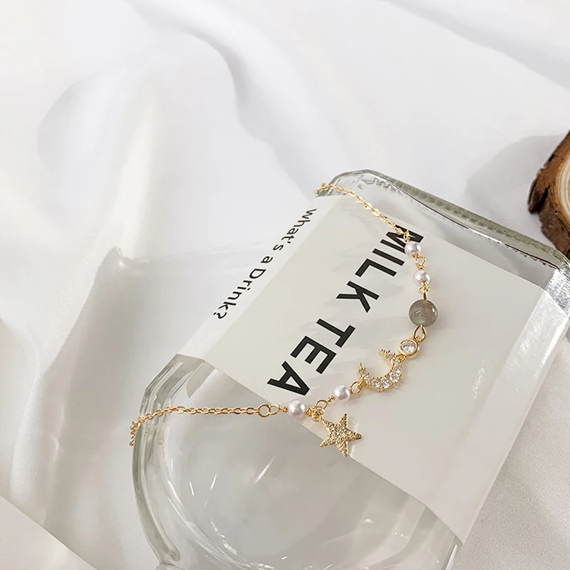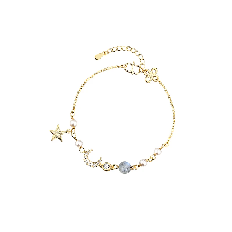 ANENJERY, браслет с подвеской в виде Луны и звезды, имитирующий жемчуг, 925 пробы, серебро, градиент, лунный камень, циркон, браслет для женщин, S-B304