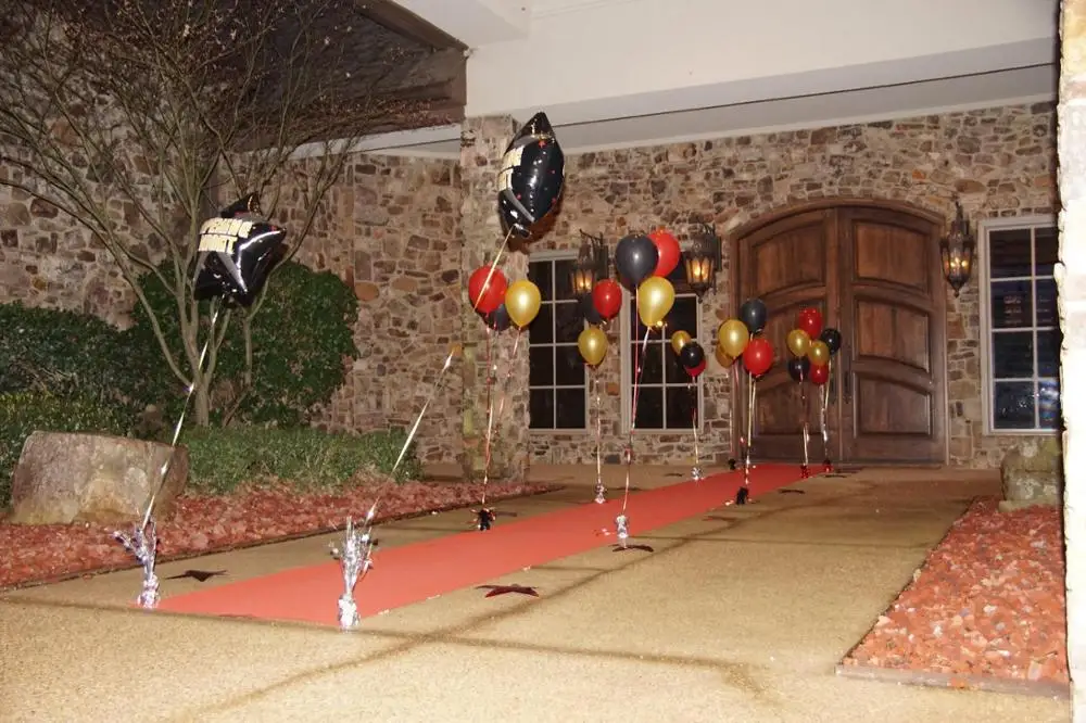Этот красный ковер был именно тем, что нам нужно было украшать для школьного танца. Он выглядел отлично на полу и был достаточно длинным, чтобы выйти снаружи