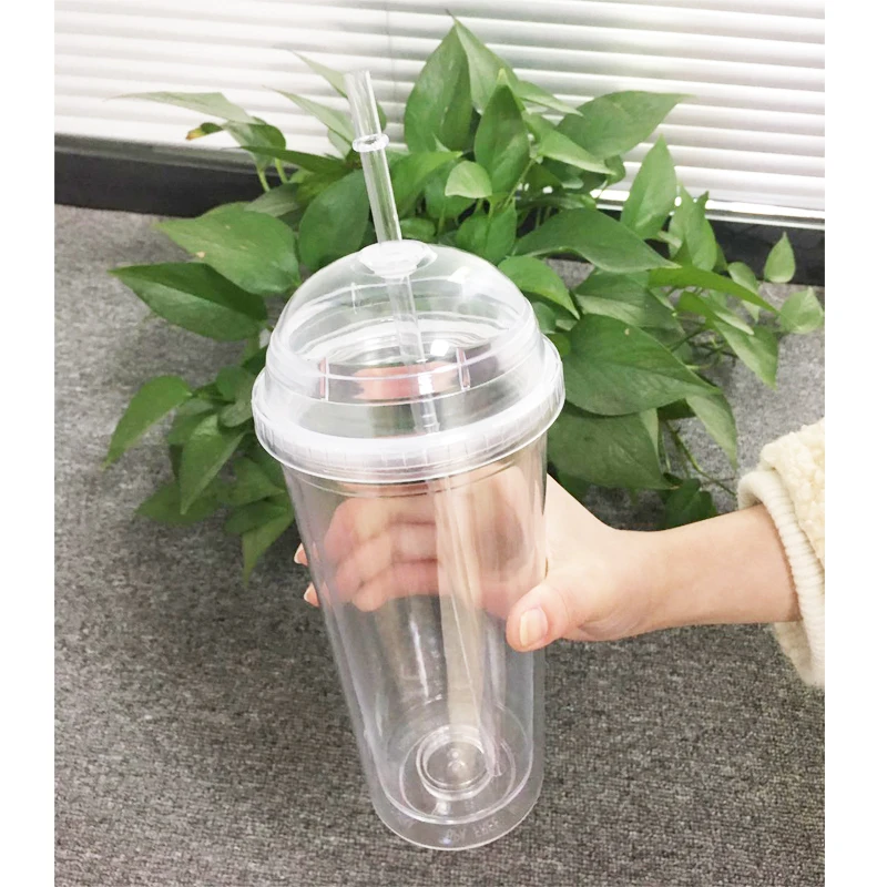 Стакан для молока, 20 унций, с купольными крышками, с двойными стенками, пластиковые чашки для питья, с соломинкой, многоразовая прозрачная бутылка для воды, прозрачная чашка для фруктов