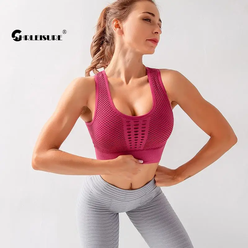 Спортивный бюстгальтер женский сексуальный сетчатый бюстгальтер для фитнеса Топ Пуш-Ап женское Спортивное нижнее белье бесшовный бюстгальтер для занятий йогой