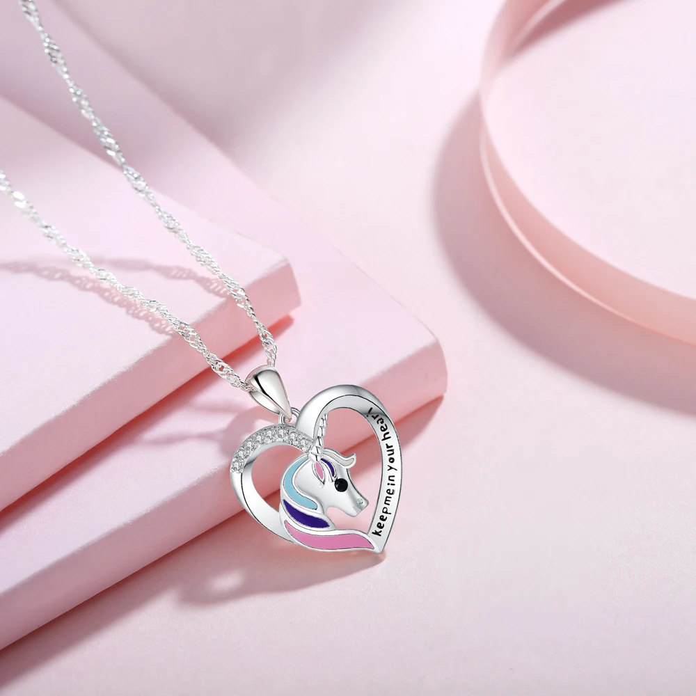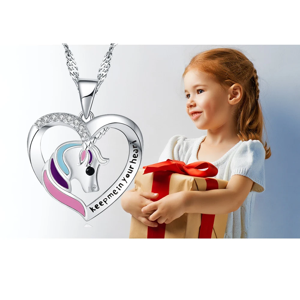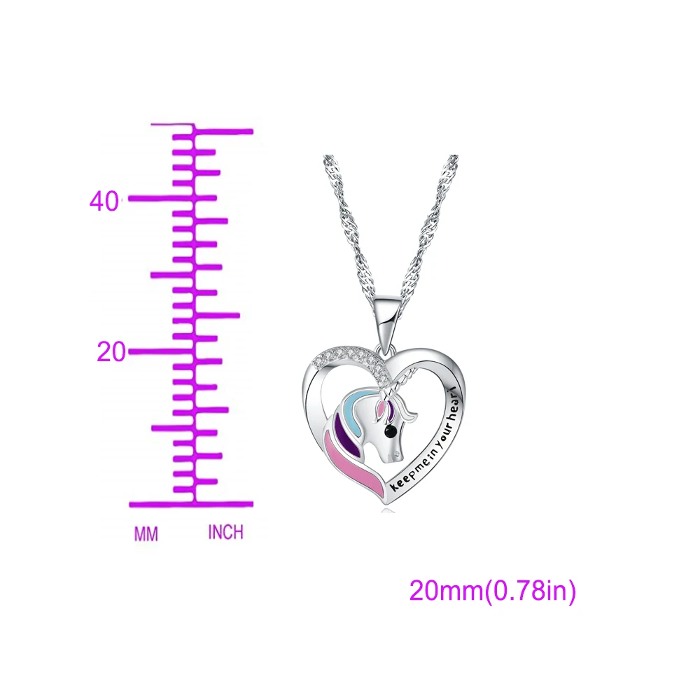 Pendant размер Подвески в виде единорога: 20 мм, гравировка сообщения «Держите меня в своем сердце», поставляется с прочной и прочной цепочкой 40 см.