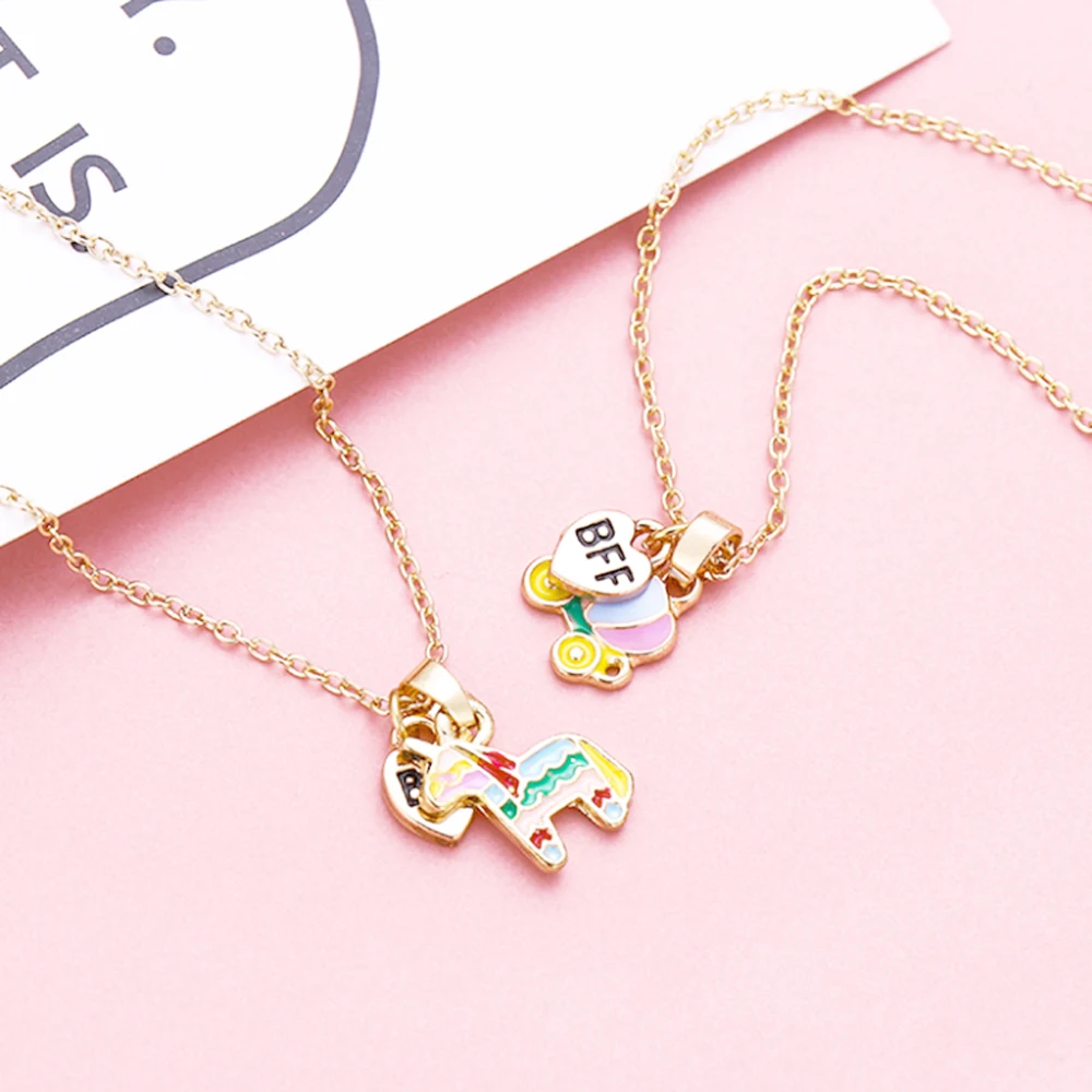 2 шт., для девочек, лучший друг, ребенок, сплав, тыква, автомобиль, ожерелье с единорогами, подвеска, ожерелье, s BFF, ювелирное изделие, подарок, единорог, женская красивая цепочка, ожерелье