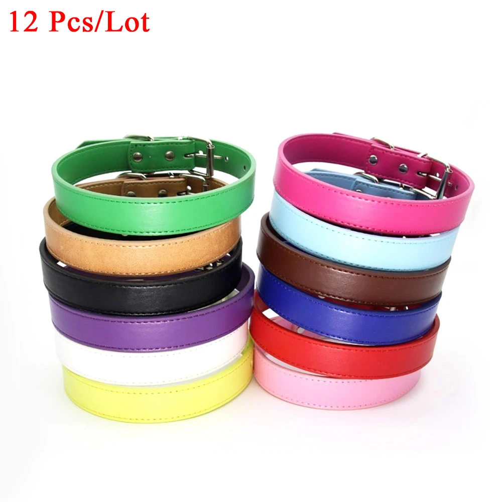 Ошейник для собак из искусственной кожи, 12 шт.лот, регулируемый шейный ремешок для щенков, для маленьких и средних собак, S M L