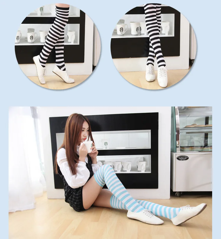 Сексуальные женские гольфы в полоску, длинные гольфы до бедра, милы...
