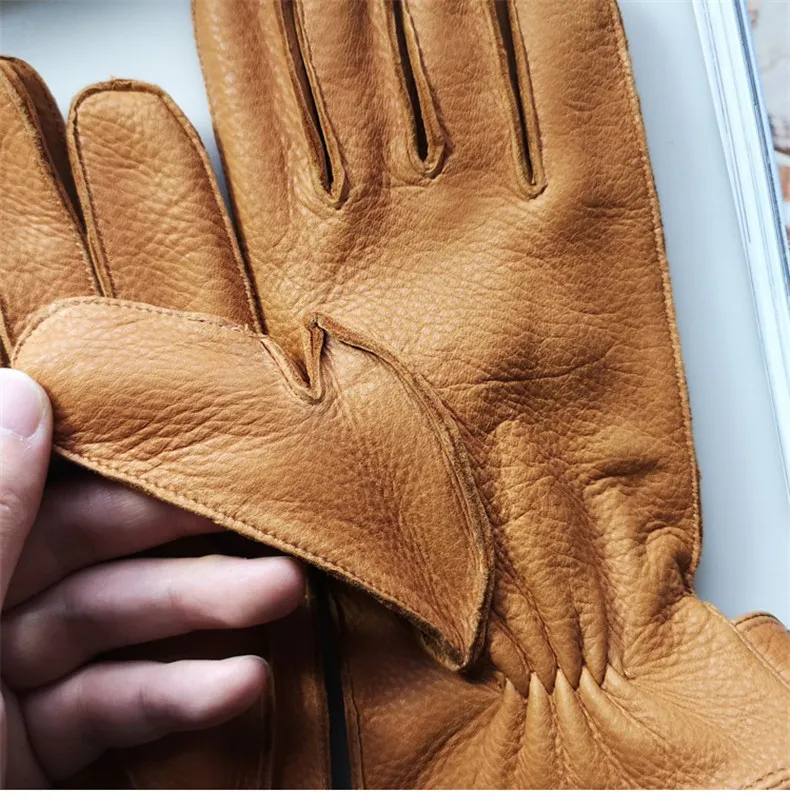 Перчатки мужские из оленьей кожи, Кожаные Водительские митенки с па...