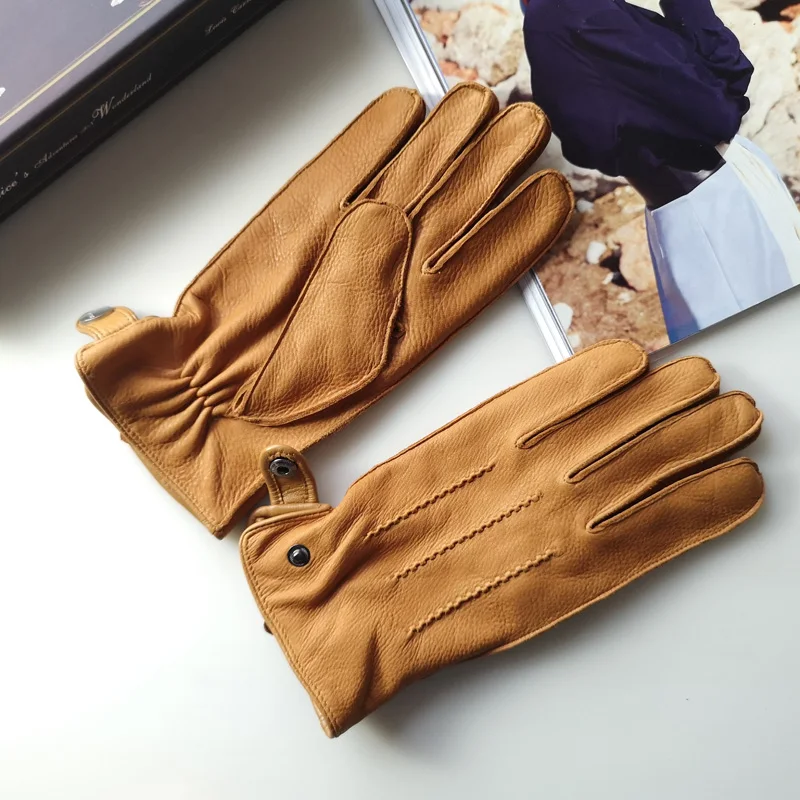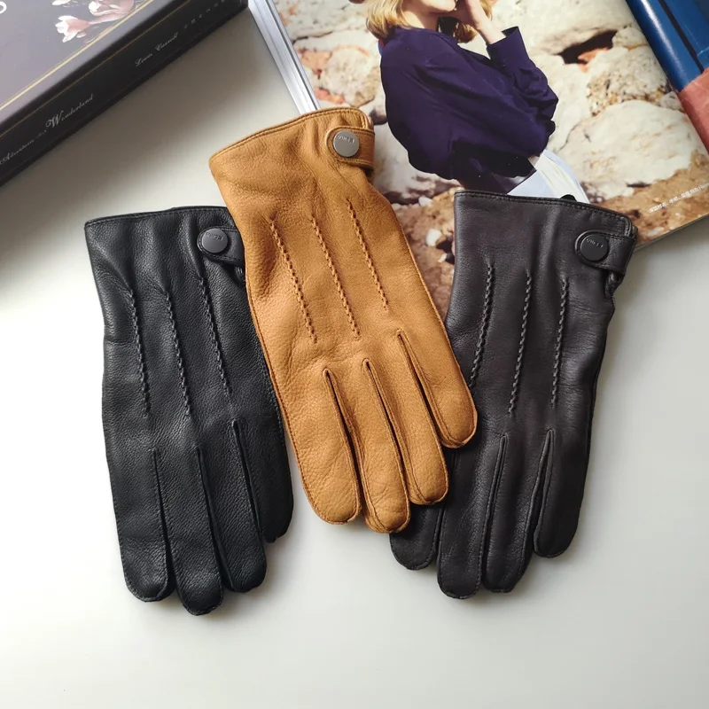Экспортируемые высококачественные кожаные перчатки из оленьей кожи, мужские термо кашемировые трикотажные перчатки с подкладкой, Осень-зима, мужские перчатки из натуральной кожи EM012WR