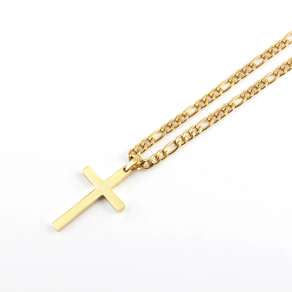 Ожерелье с подвеской в стиле хип-хоп для мужчин и женщин, модная цепочка Фигаро под золото из нержавеющей стали 316L, христианский чокер, ювелирное изделие