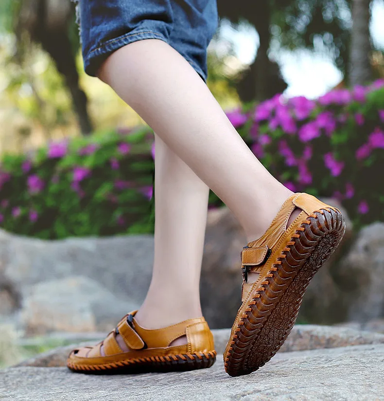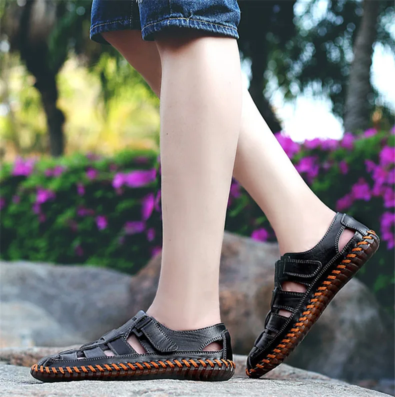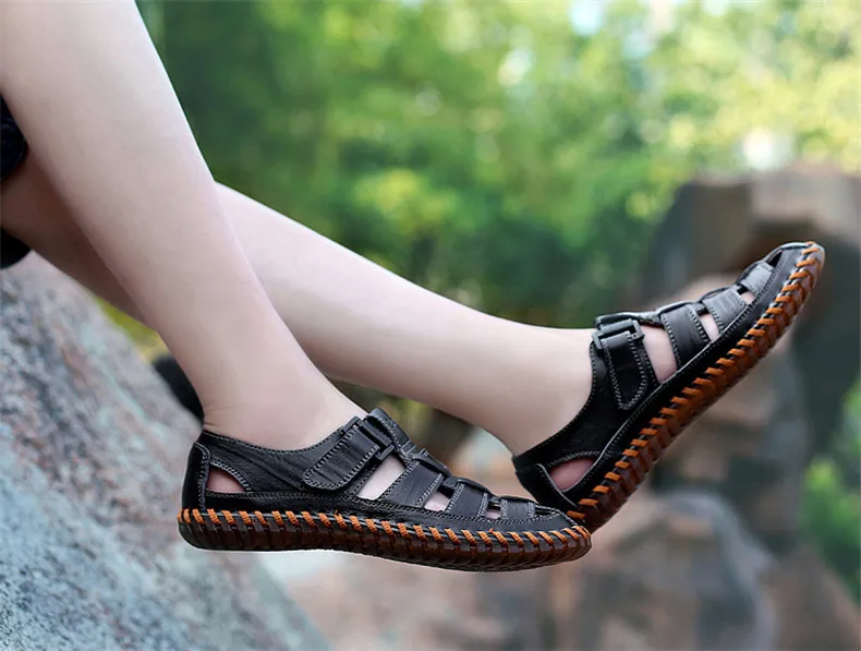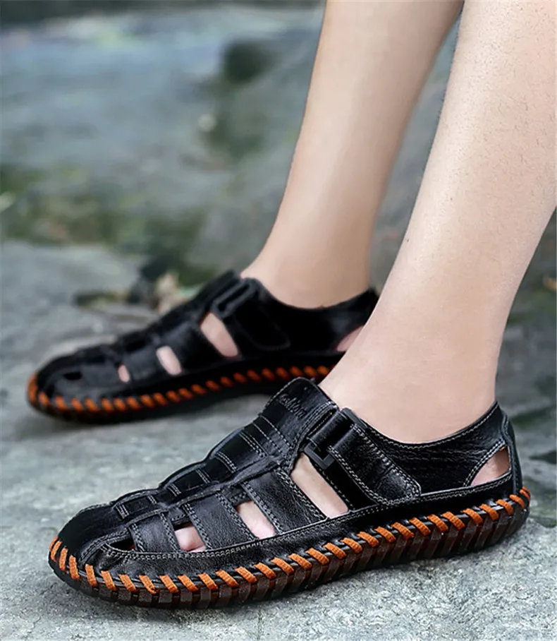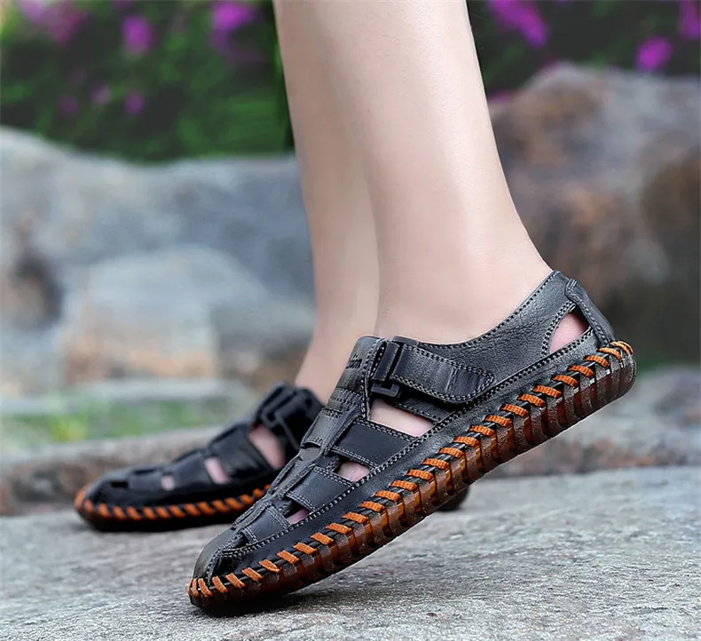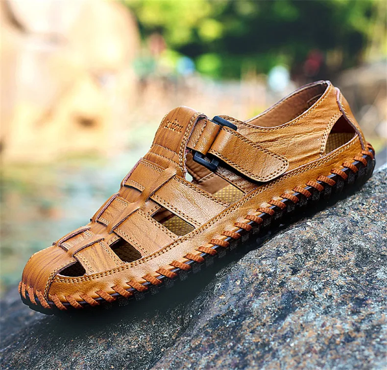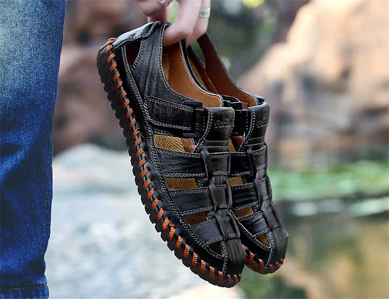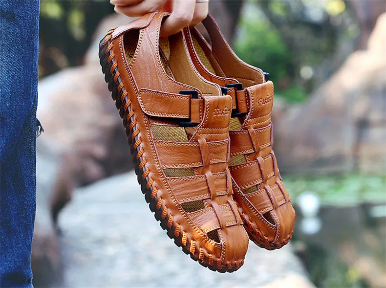 Летние сандалии; Мужская кожаная дышащая обувь для активного отдыха...