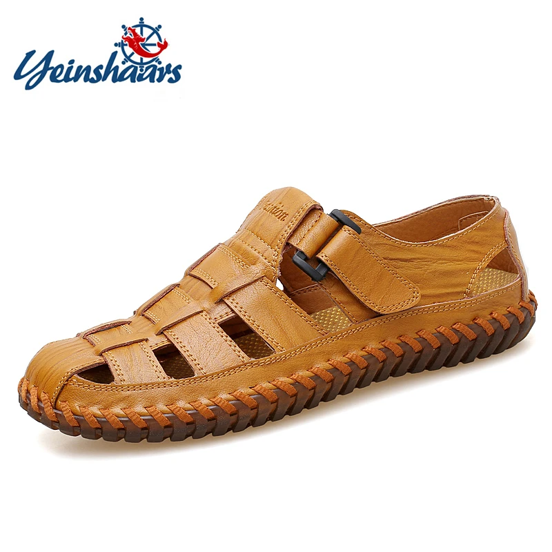 Сандалии YEINSHAARS мужские из коровьей кожи, уличная Летняя обувь ручной работы, дышащая повседневная обувь, прогулочные босоножки