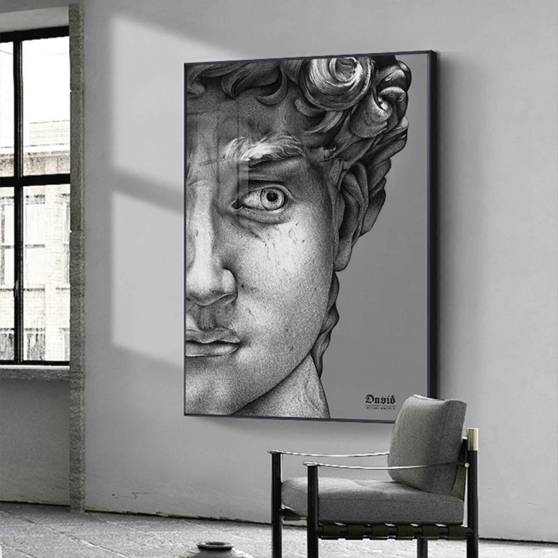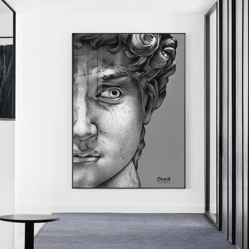 Современная гипсовая скульптура Давид, холст, постеры и печатные рисунки, настенное искусство черно-белая картина для гостиной, спальни