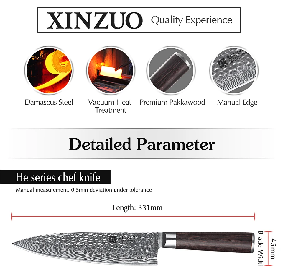 Нож шеф-повара из дамасской стали, 8 дюймов, 67 слоев