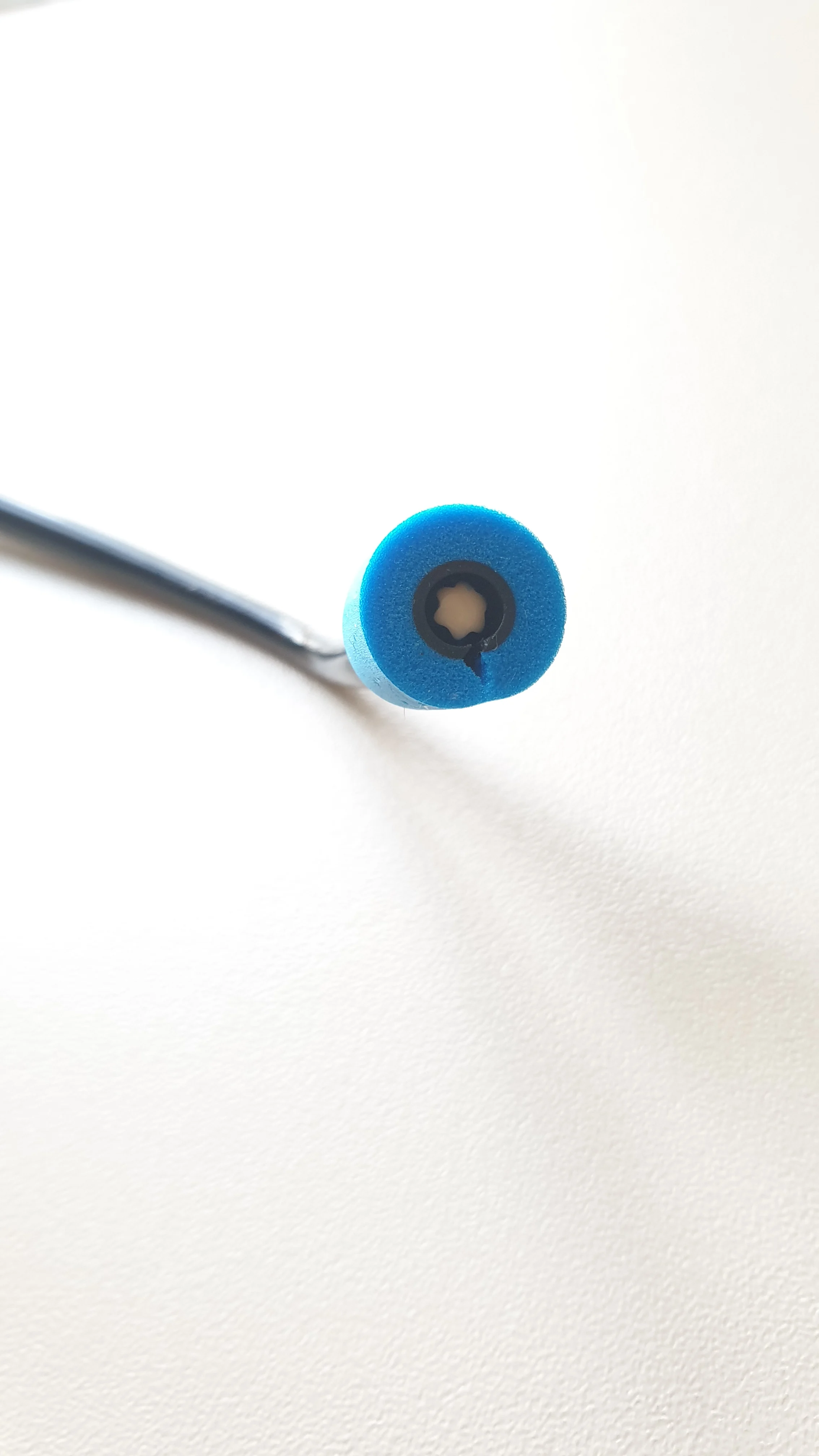 É feito de um material bastante flexível e que se molda ao formato do ouvido.