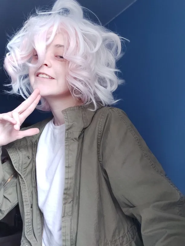 Качество парика потрясающее! Он очень плотный и очень мягкий. Парик прибыл через месяц. Стиль и работа были очень просты. Первая фотография перед оформлением, а вторая после! Если вы предпочитаете прическу Nagito canon, стиль необходим, но если вы хотите более естественный вид, вам не нужно его стилизовать!