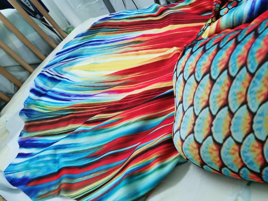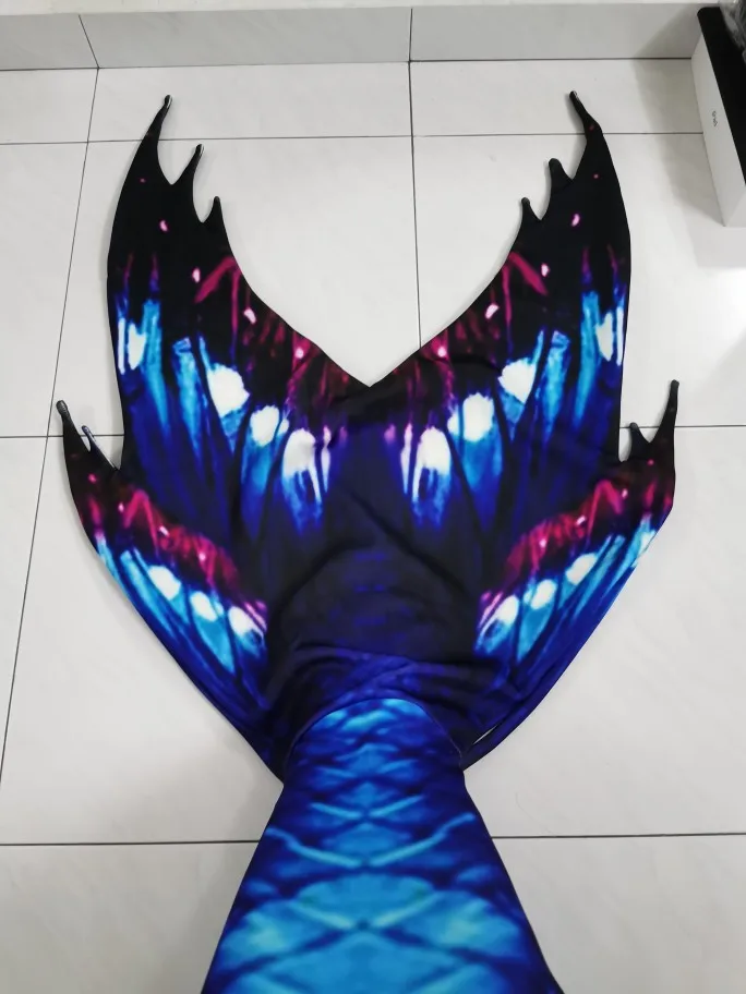 Красивый принт и цвета. Это Открытый Нижний хвост, монофин идет снизу. Нет молнии. Продавец очень полезен и сделал измерения, чтобы настроить размер. Очень хорошо Я получил только хвостик, без монофина. Отправлено фото перед отправкой, и товар прибыл очень быстро. Определенно рекомендую это. Очень широкий хвостик, шире, чем моя трехфутовая кровать. Толстый материал.