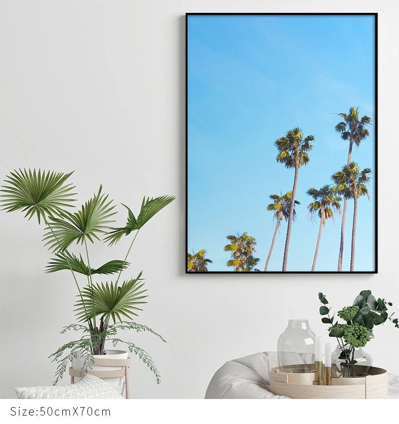 Кокосовая пальма голубое небо пейзаж настенная живопись холст скандинавские постеры и печать настенные картины для гостиной домашний декор