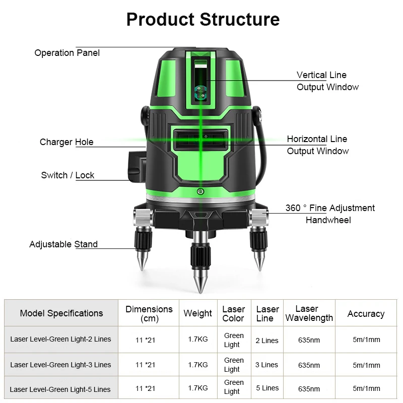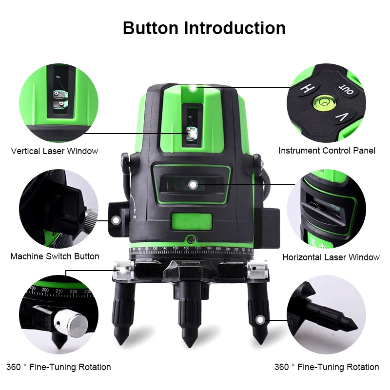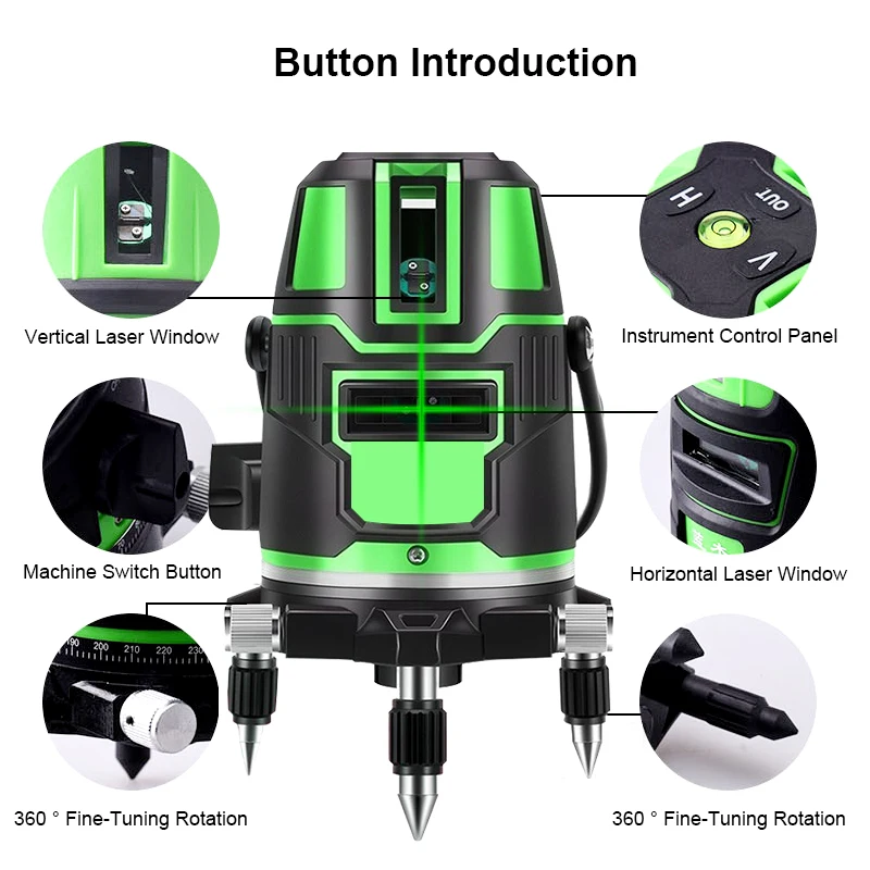Самонивелирующийся зеленый лазерный уровень с перекрестными линиями, 360, 35 нм