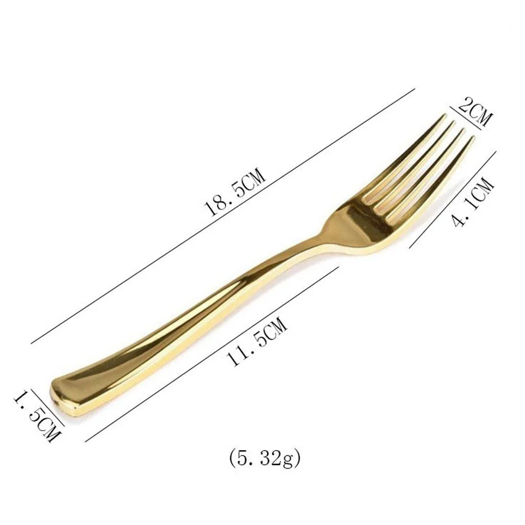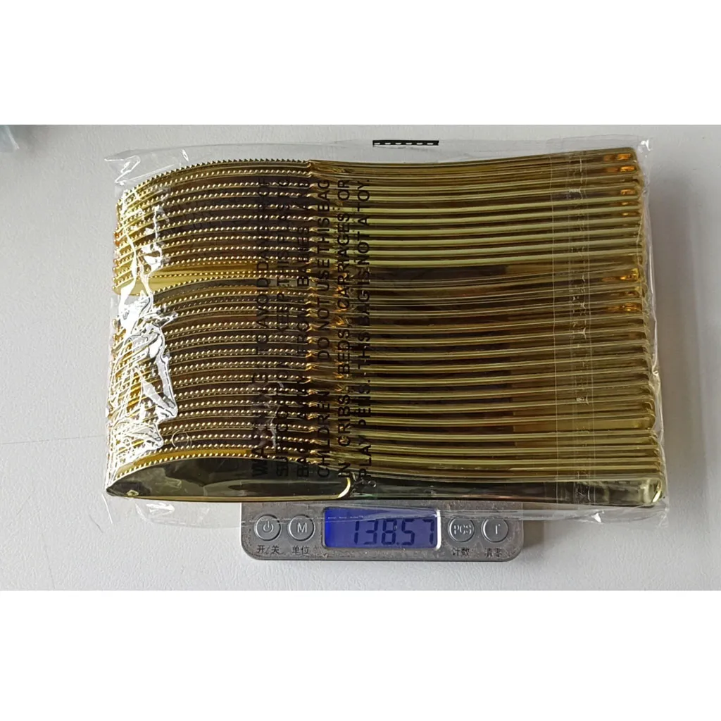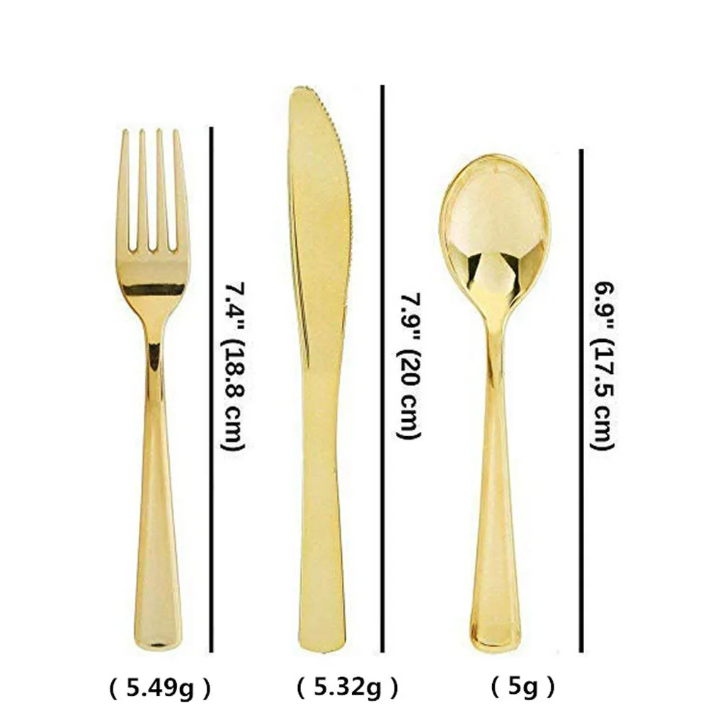 Набор одноразовых пластиковых столовых приборов золотого цвета, набор столовых приборов из золотой бронзы, нож, вилка, ложка, набор посуды для дня рождения