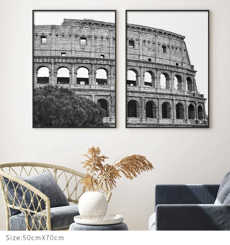 Постеры в виде колизеума из Италии, Настенная картина с изображением древнего римского памятника колосо, классические украшения для гостиной, черно-белые