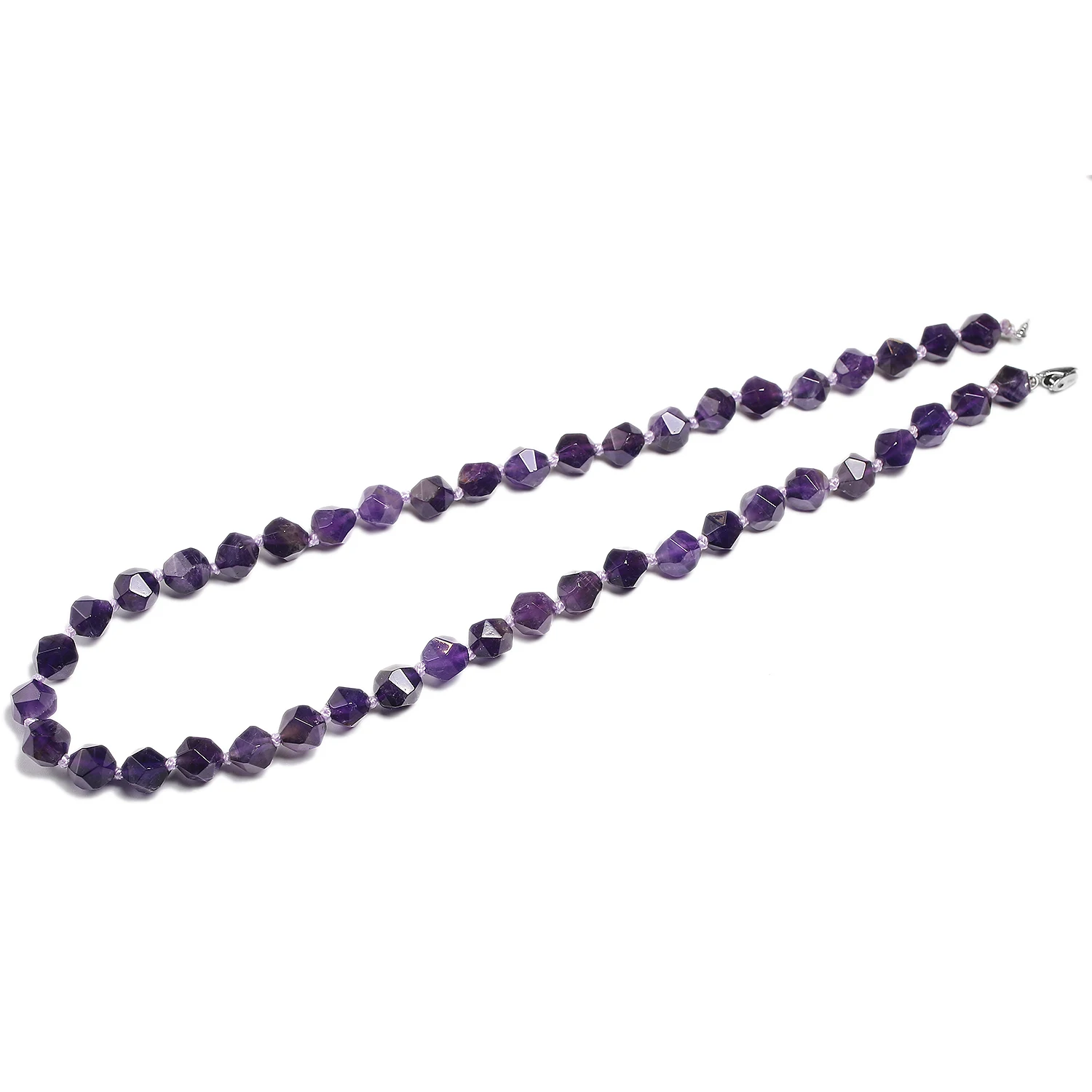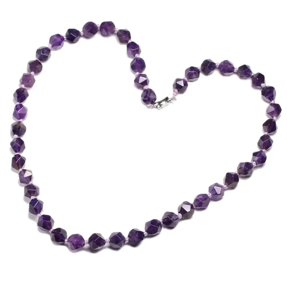 Натуральный Граненый Аметист ожерелье с драгоценным камнем серебряные бусины 16,5 дюйма 8 мм