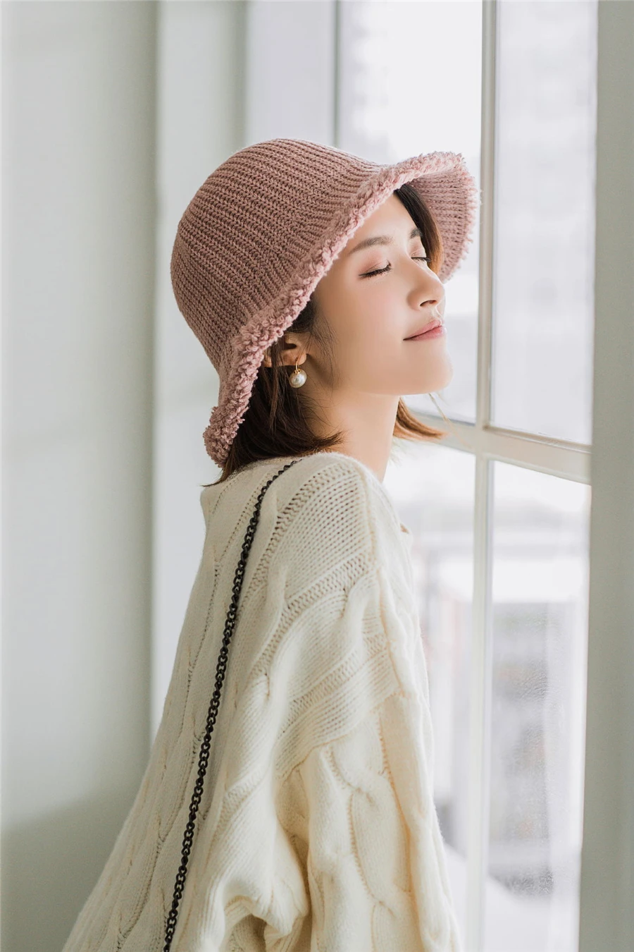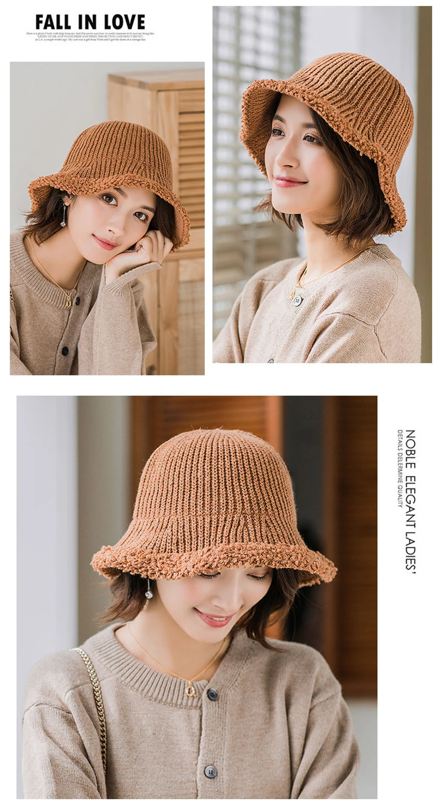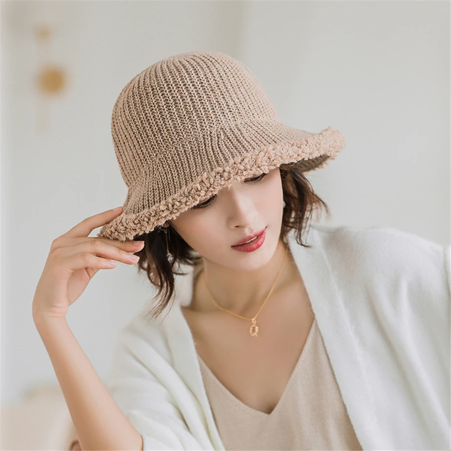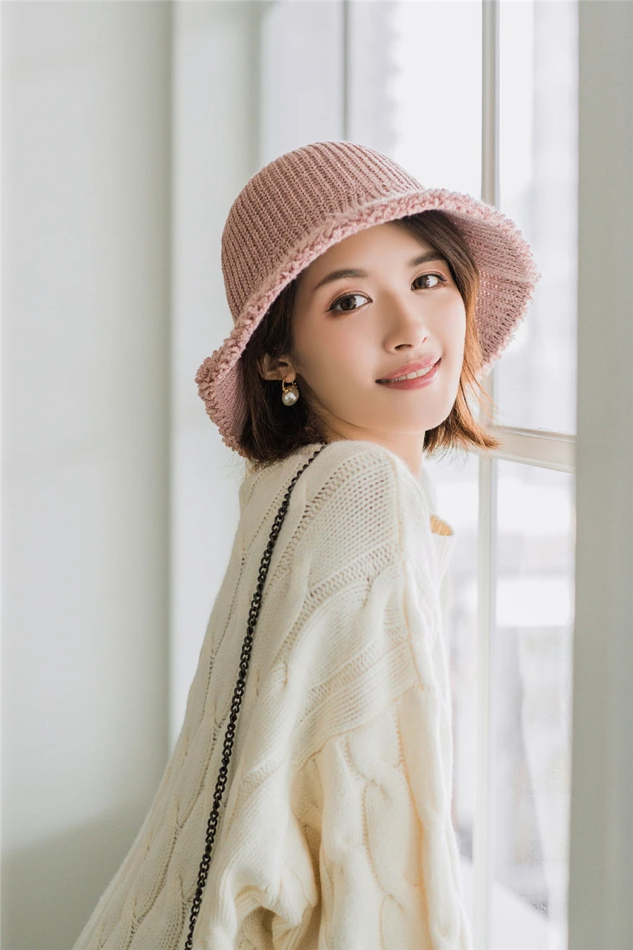 Панама женская зимняя трикотажная, модная Милая теплая дышащая Панама от солнца, уличная шапка от солнца, 2020