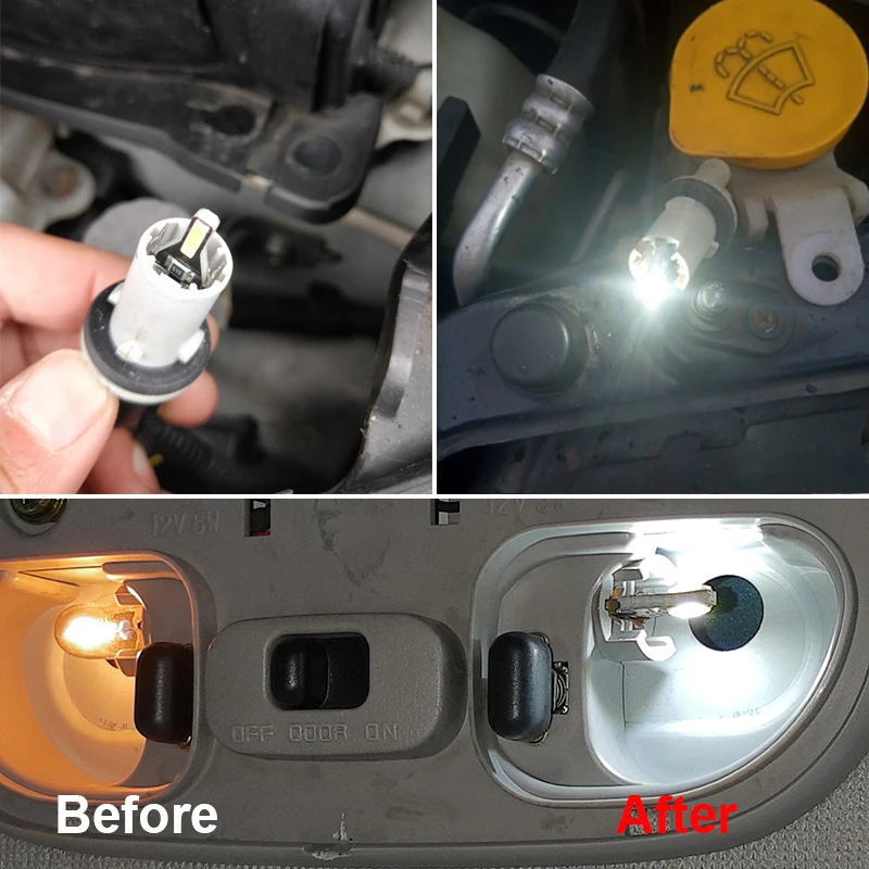 Розетки: Подходит для большинства моделей автомобилей с разъемом T10 / T15 / 194 / 168 / 158 /12256 / 12961 / 2821/W5W. Также совместим с разъемами 921 / 912 / 516 / 579 / 917 / 918 / 920 / 922 / 923 / 906 / 904 / 916. Описание: 100% новый и высококачественный Более быстрый отклик при включении/выключении, длительный срок службы, низкое энергопотребление, энергосбережение Простая установка, прямая замена, проводка не требуется Применение: Автомобильный купольный светильник, светильник карты, перчатсветильник светильник для чтения, паркосветильник, светильник багажника, светильник щение, светильник номерного знака, паркосветильник светильник, габасветильник щение, босветильник освещение и т. д. Спецификация: Тип розетки: T10/194/W5W Чипы: 2 шт 7020smd Напряжение: 12 В-14 В постоянного тока Люмен: 100 лм Посылка2 шт./4 шт./10 шт. Светодиодная лампа Эффект установки