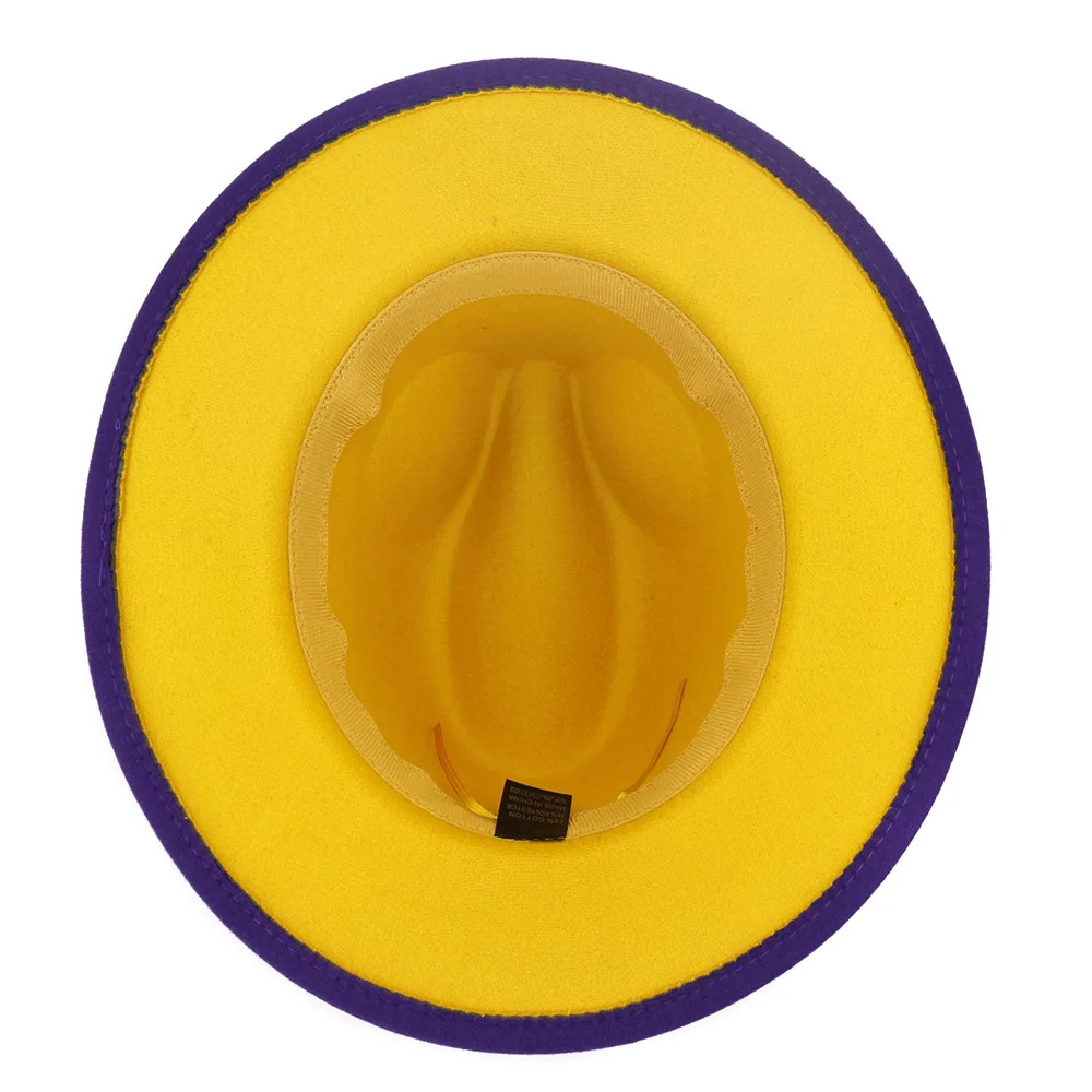 QBHAT 2020 желтая фиолетовая Лоскутная шерстяная фетровая шляпа с ремешком с пряжкой для мужчин и женщин с широкими полями Панама ковбойская шляпа Trilby LXL