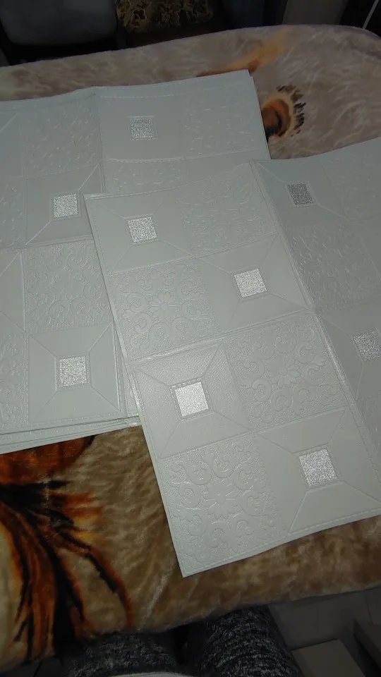 Привет. Получила обои. Очень красивые, но тонюсенькие, клеить надо аккуратно, могут даже порваться. Квадратики уже были приклеены в них. Продавец отзывчивый, отвечал на вопросы сразу, и по посылке сразу давал отчёт, где и как идёт... Спасибо продавцу и за товар спасибо.