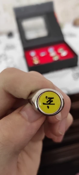Кольца сделаны хорошо. Вот только цвета и иероглифы на некоторых кольцах не соответствуют тому, как должно быть. Изначально они все одного размера, так что подходят только на средний палец, но думаю что можно будет их поджать. В комплекте цепочка. В Беларусь (Витебск) пришли за месяц. Аккуратно упакованы, коробочка закрывается плотно благодаря магнитной полосе. Вцелом заказом довольна с продавцом не общалась