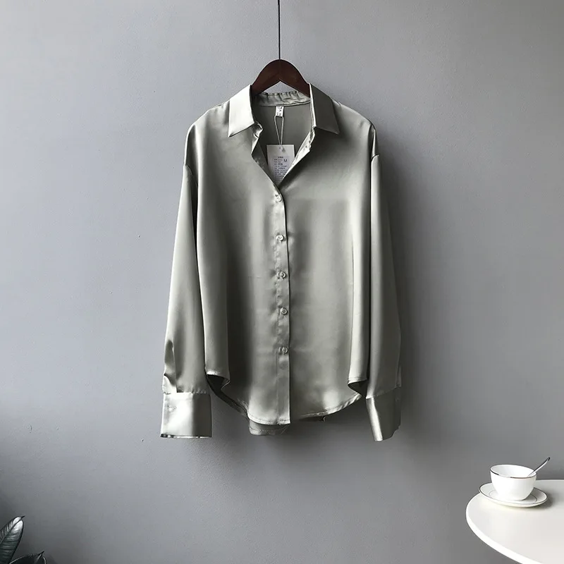 Женская атласная блузка, рубашка с длинным рукавом, лето 2020, 0726