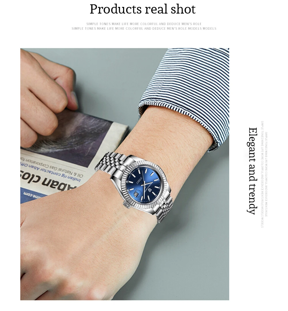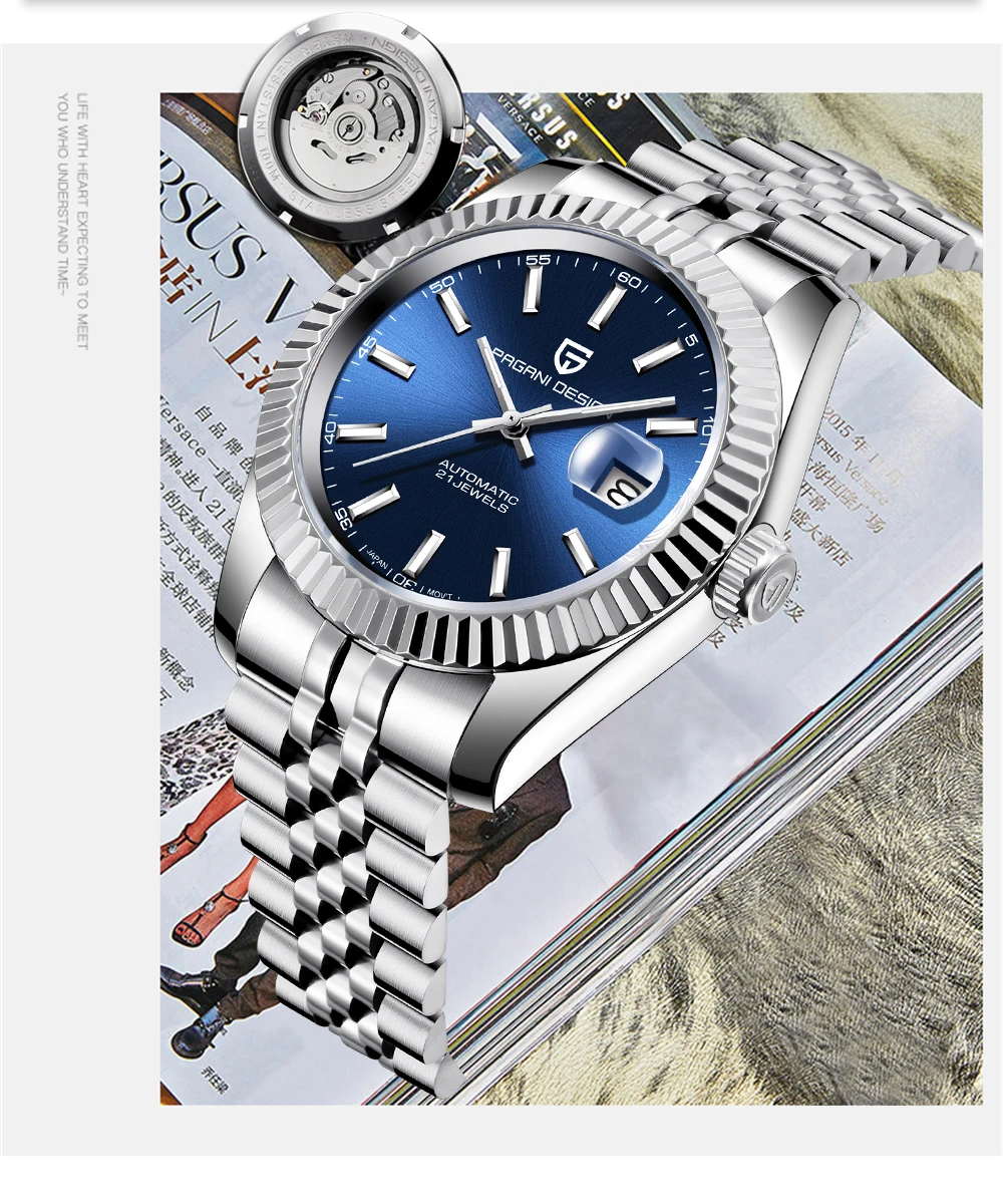 Часы мужские из нержавеющей стали, механические, водонепроницаемые, автоматические