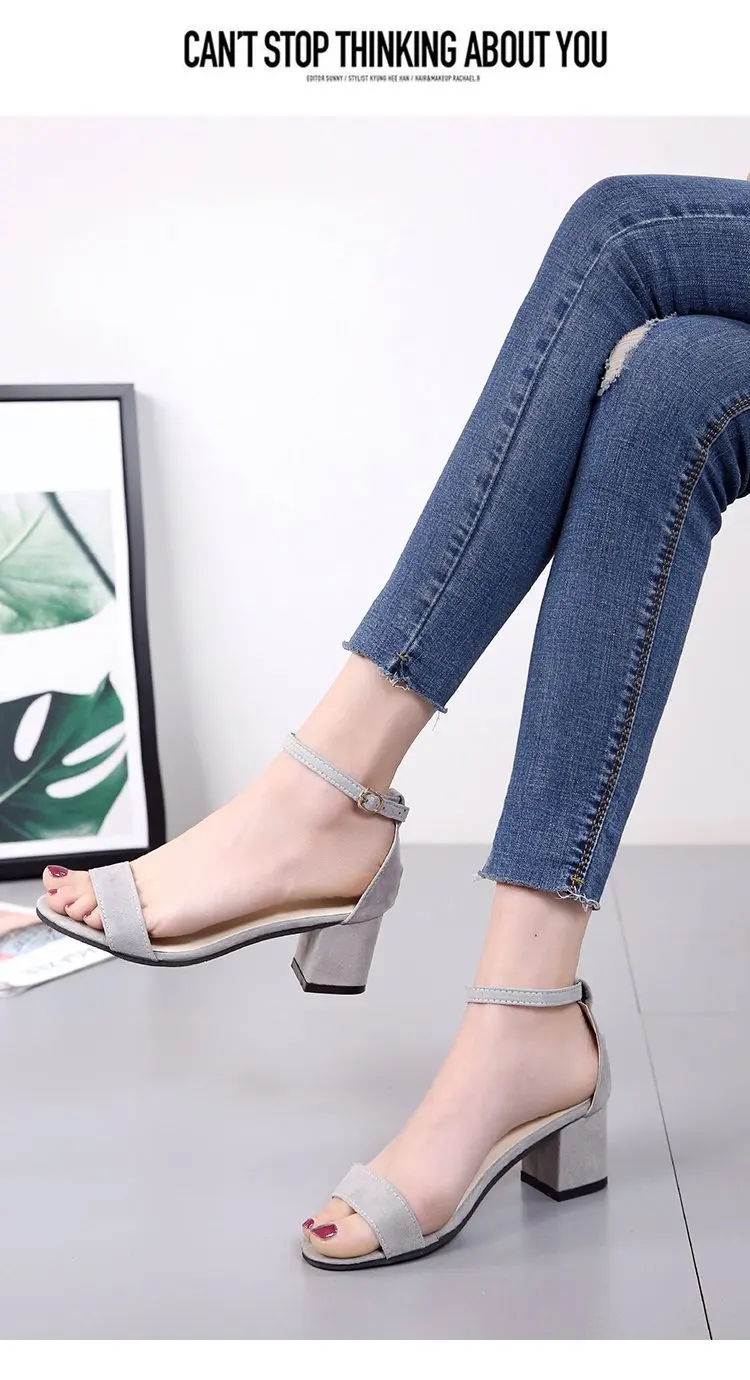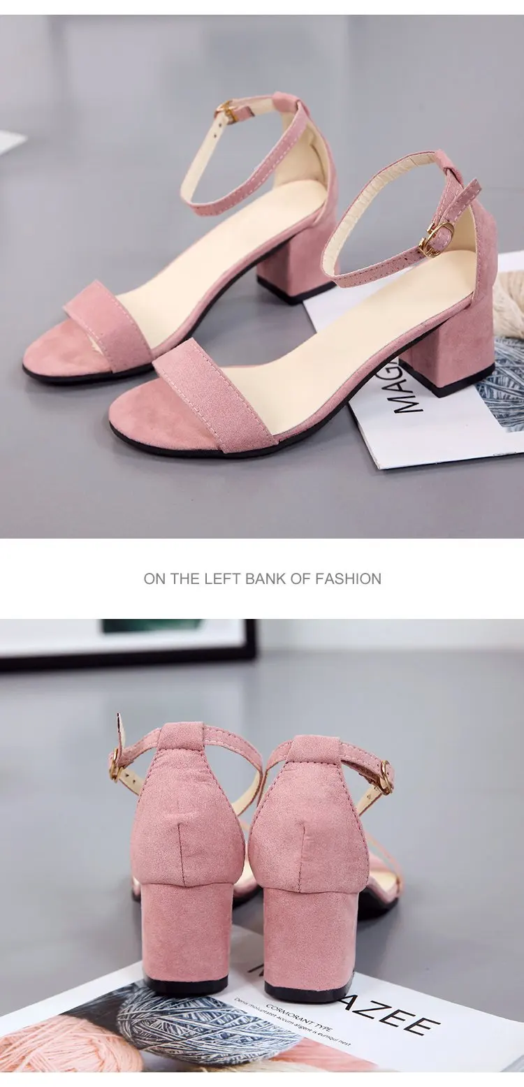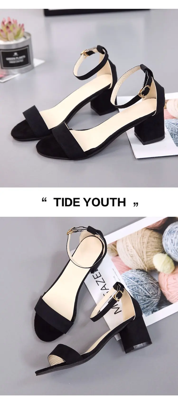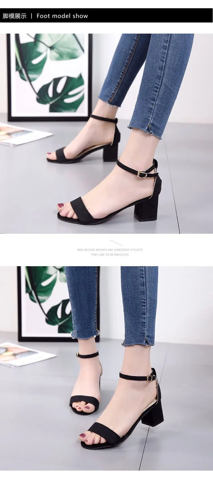 QSRЖенская обувь на высоком каблуке 5,5 см 2019 г. Новые Летние черные корейские студенческие туфли сандалии в римском стиле на Высоком толстом каблуке с пряжкой