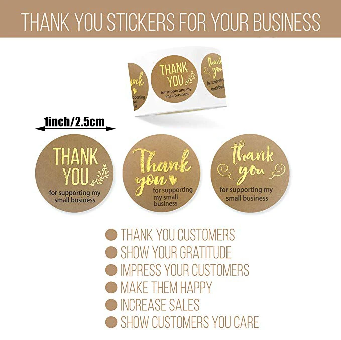 Спасибо за поддержку моего бизнеса крафт-наклейки с золотой фольгой круглые наклейки для маленького магазина наклейки ручной работы 500 шт