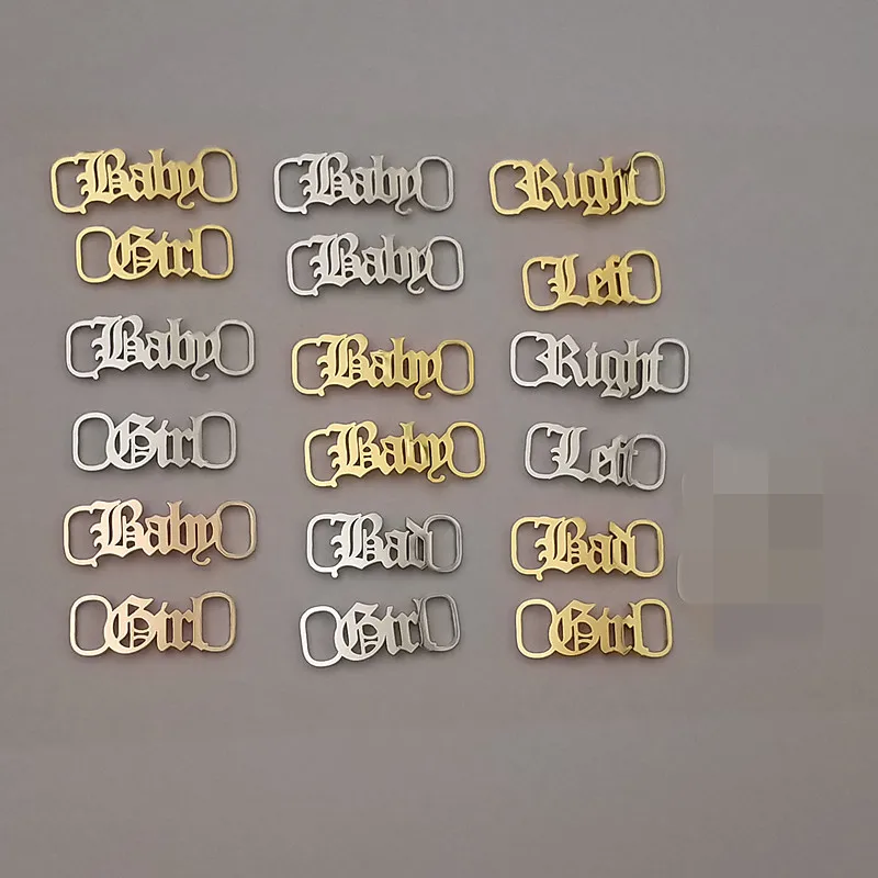 Старые английские буквы для маленьких девочек, Модная бижутерия, женские туфли из нержавеющей стали с пряжкой в стиле панк, аксессуары для обуви для женщин и мужчин, подарок