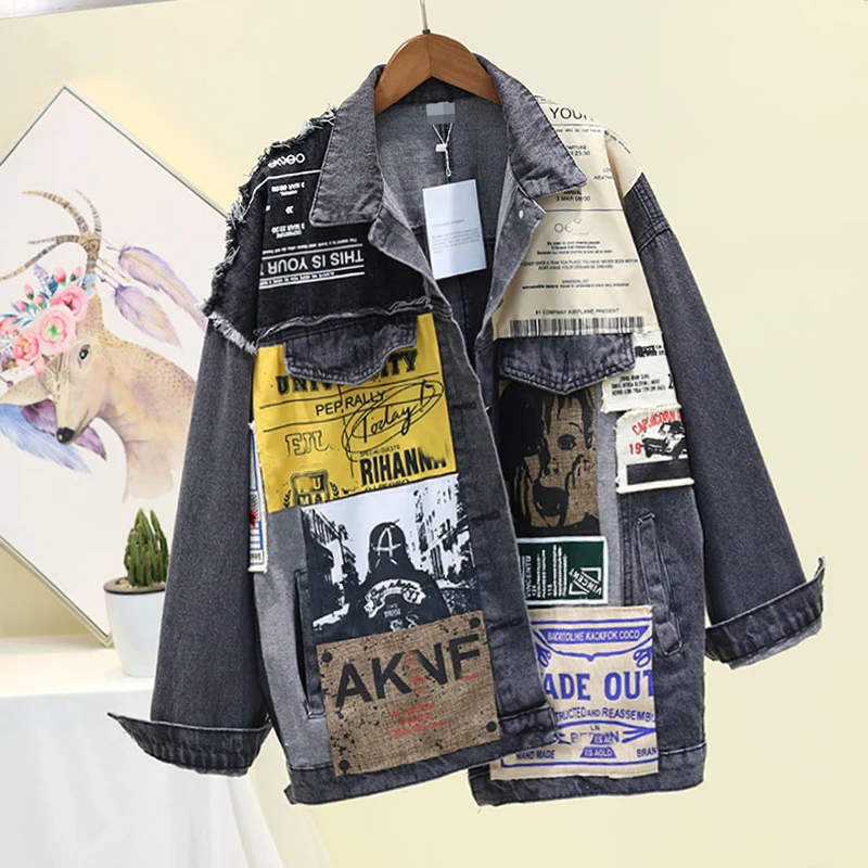 Куртка женская джинсовая с длинным рукавом, модный винтажный Бомбер...