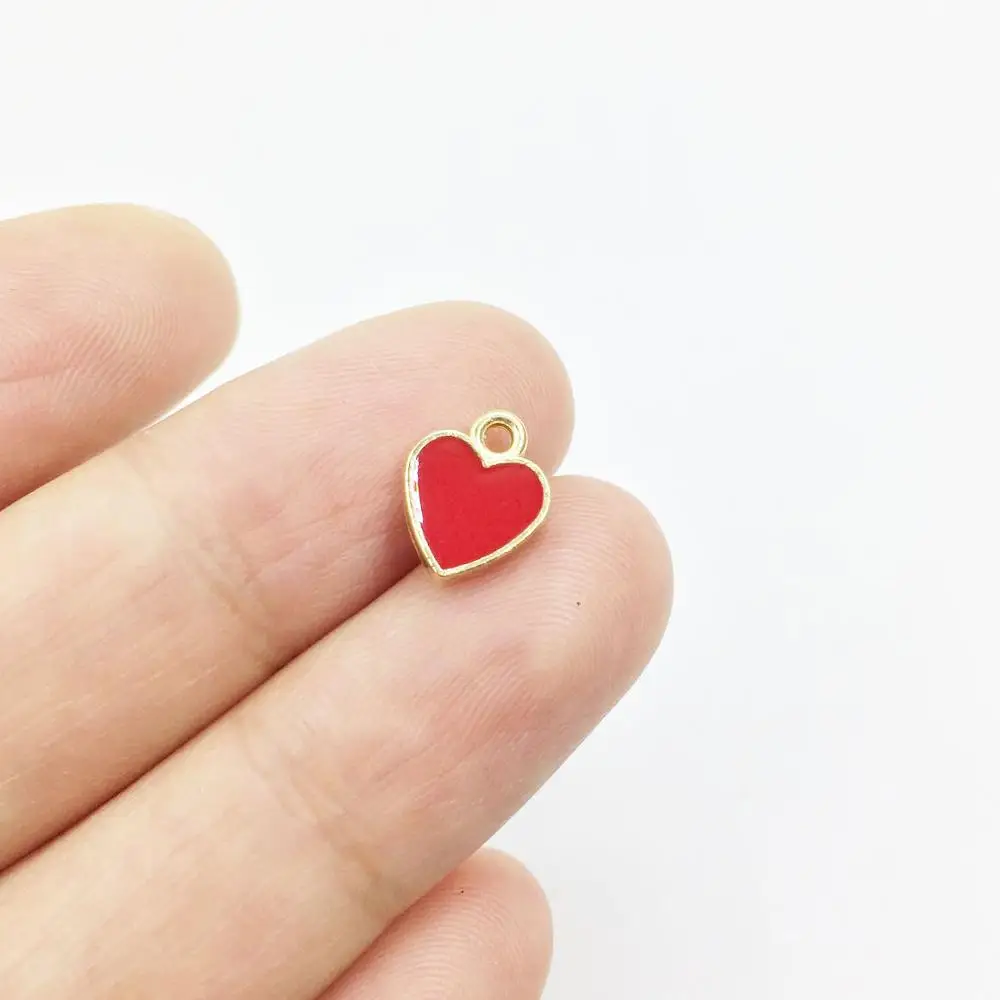 Eruifa 10 шт. 8 мм красная эпоксидная Милая крошечная подвеска в форме сердца из цинкового сплава ювелирные изделия сделай сам серьги, браслет, ожерелье 2 цвета